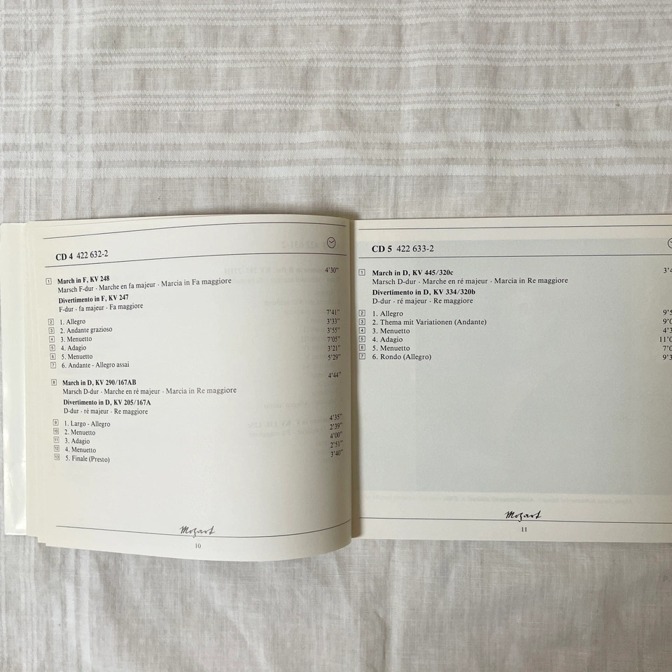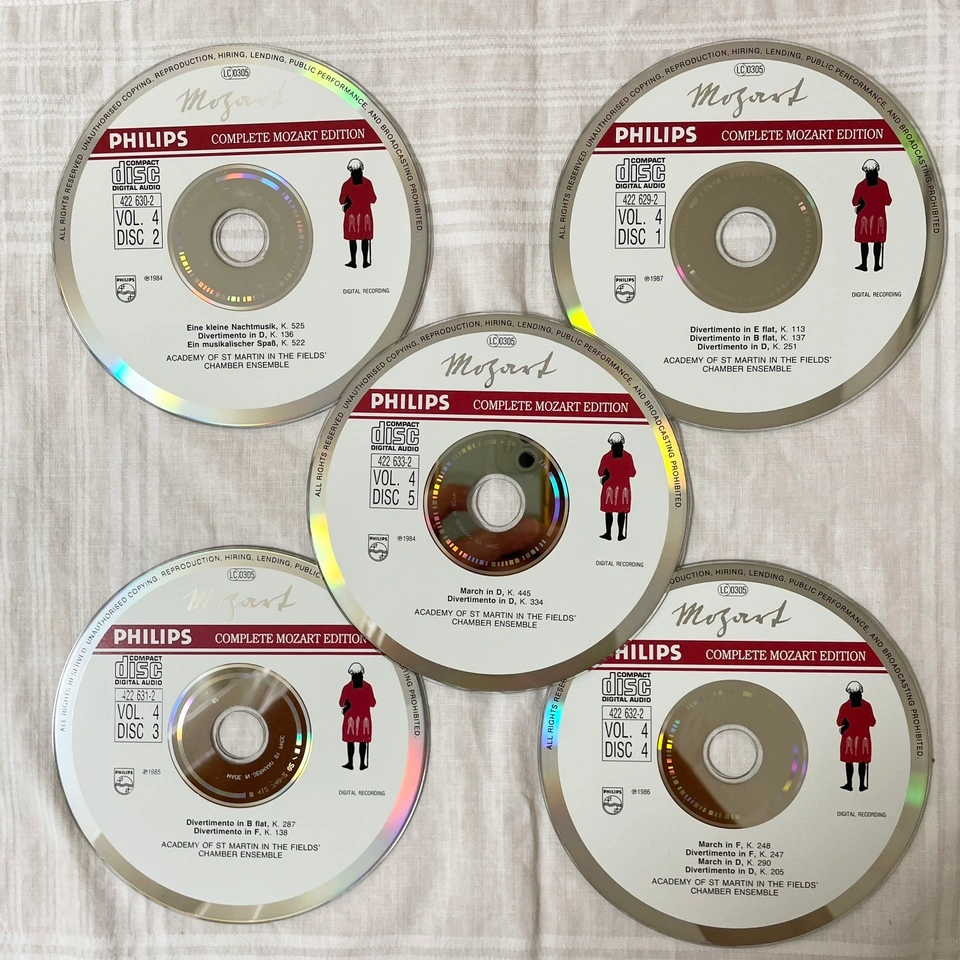 【作品概要】 モーツァルトの「ディヴェルティメント」は、弦楽器と管楽器のために書かれた楽曲で、軽快で楽しい雰囲気が特徴です。このCDセットは、モーツァルトの作品を包括的に楽しむことができます。 【演奏者について】 アカデミー・オブ・セント・マーチン・イン・ザ・フィールズの室内楽団による演奏は、精緻で感情豊かです。彼らの演奏スタイルは、モーツァルトの音楽の魅力を最大限に引き出します。 【商品詳細】 このCDセットは5枚組で、全体の再生時間は約4時間です。トラックリストには、KV 113、KV 287、KV 137など、モーツァルトの代表的な作品が含まれています。 - ブランド: Philips - 作品名: Mozart: Divertimenti - シリーズ名: Complete Mozart Edition - 演奏者: Academy of St Martin in the Fields Chamber Ensemble - ディスク数: 5 - トラックリスト: KV 113, KV 287, KV 137, KV 251, KV 445, KV 138, KV 248, KV 205, KV 522 上記迄が自動入力された内容です。 自宅保管の中古品です。表題カバー、印刷物は、よれ、シミ、等があります 受け渡し場所 東中野駅または落合駅周辺 ご覧いただきありがとうございます。