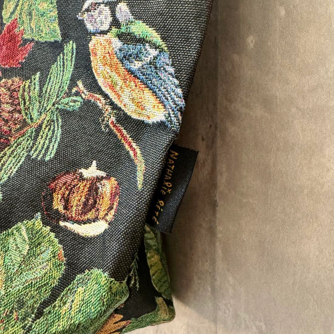パリのデザイナー『ナタリー・レテ』さんのトートバッグです。 ナタリー・レテが描く、自然をテーマにした美しい植物動物がデザインされています。 絵の筆使いをゴブラン織りで見事に表現しており、その細部に至るまでの繊細さが際立っています。 薄手で軽いのが嬉しい、日常使いにピッタリなサイズ。マグネットボタン付きで口が大きく開いてしまうのを防ぐ仕様になっています。 サイズ:46x26xマチ16cm 素材:ポリエステル69% 綿17% レーヨン12% ナイロン2% 産地:CHINA 持っているだけで気分が上がる、バッグです♪ 注意事項 ※製造工程上、デザインのズレ、色ムラや織りムラがある場合がございます。 ※ネップが生地の表面に出ている場合がございます。ネップとは繊維が絡み合ってできた節(糸のかたまり)のことです。工程上避けられないものの為、良品の範囲内とさせていただきます。ご了承ください。 ※手作業での縫製の為、商品毎にサイズが異なります。 ※機械織りの為、商品到着時に多少油の臭いが残っている場合がございます。風通しの良い日陰に数日干していただきますと緩和される場合がございます。ご希望の方はお気軽にご連絡ください。