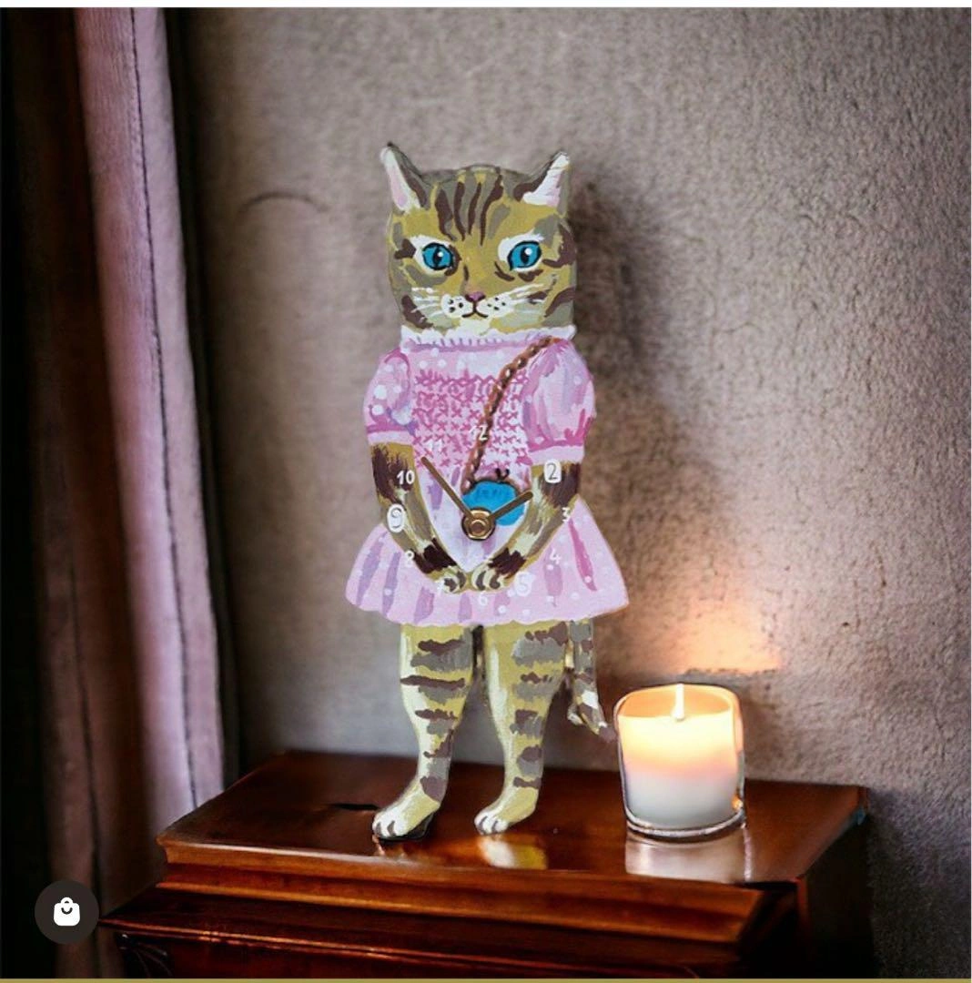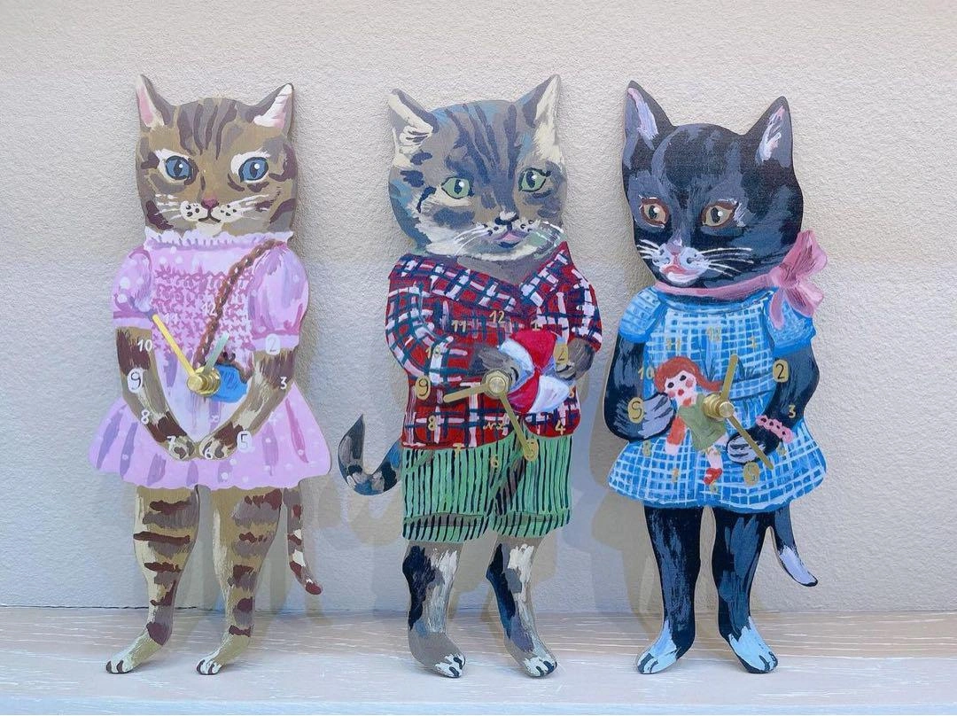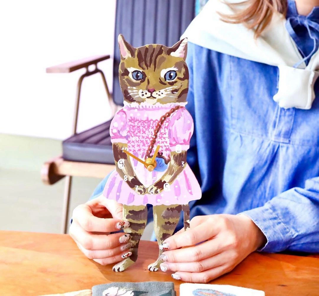 ナタリー・レテの愛らしい猫たちが、お部屋に癒しを届けます。 パリのデザイナー、ナタリー・レテの描くイラストの壁掛け時計。 彼女の作品がそのまま壁にかかっているようで、アート性の高いアイテムです。 手書きの数字に温かみを感じます。 ☆新品・未使用 サイズ W 10.4 × H 27.2 cm 素材 MDF(※裏面は無塗装) ※単三電池使用(電池は付属しておりません) ※製造の工程上、プリントの色ムラや濃淡、プリントずれや剥げ、インクとびなどがある場合がございます。予めご了承ください。 ※壁に掛けた際に真っ直ぐになるようにムーブメントの向きで重心を調整しています。このため、掛け具に対してムーブメントが曲がってついている場合がございますが不良品ではございません。 ※製品の特性上、電池を入れにくい場合がございますが、不良品ではございません。入れにくい場合は電池の+側からの挿入をお試しください。 【Nathalie Lete】 1964年パリ生まれ。 テキスタイル、リトグラフやセラミックなど幅広くアートを学ぶ。 子供の頃の思い出や日常の生活の身近なところからインスピレーションを得るという彼女のカラフ ルな作品は、どことなくユーモラスでかわいくてハッピーでシニカル。 イラストレーターとして本を出版、ラファイエットデパートのバレンタインデーのバックデザイン、GODIVAのパッケージデザイン、雑貨類のコレクション展開など、幅広く活躍している。 ご希望の方はお気軽にご連絡ください。