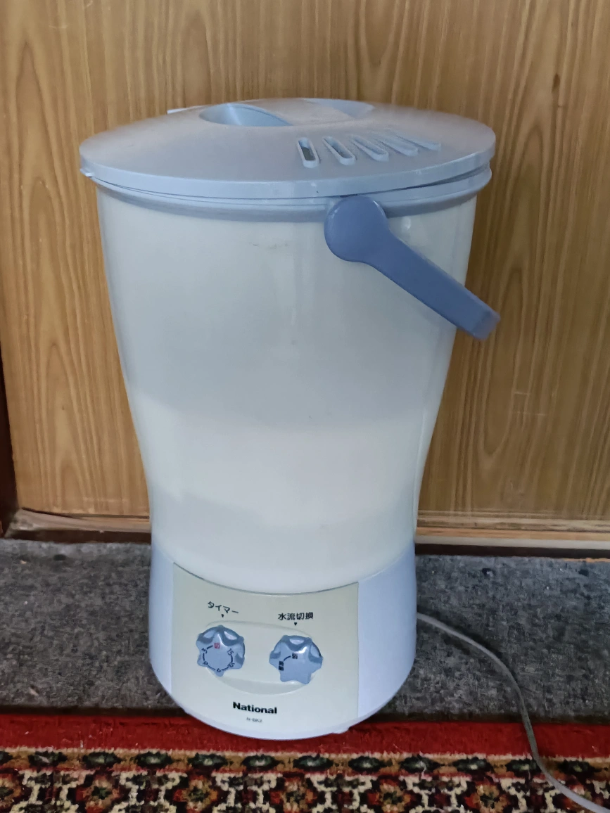 だいぶ前に従兄弟からのプレゼントでもらったものですが、使用せずにずっと置きっぱなしでした。 未使用品ですがちゃんと電源を入れて作動確認は出来ています✌️ 今ある洗濯物で一緒に洗いたくない衣類ありませんか? 1.ペットのタオル、服 2.泥だらけの野球のユニフォーム、サッカーのTシャツ、パンツ、作業着、雑巾 3.幼児のパンツ、衣類 4.砂まみれの海水着 5.ジャガイモ等の泥落とし等に最適な洗濯機です。 ※すすぎ、脱水、乾燥機能はありません。 その頃定価は9000円くらいでしたので、半額の4500円での出品でお買い得だと思います。下着ランジェリィ、ふきん、又は反対に汚れものだけのお洗濯にお勧めいたします‼️ バケツ型ですので排水ホースはついていませんその旨ご了承の上での購入をお願いします🙇 箱に汚れはありますが、箱ごと欲しい方にはそのままお渡しします。 今のところお値下げは考えておりません❗