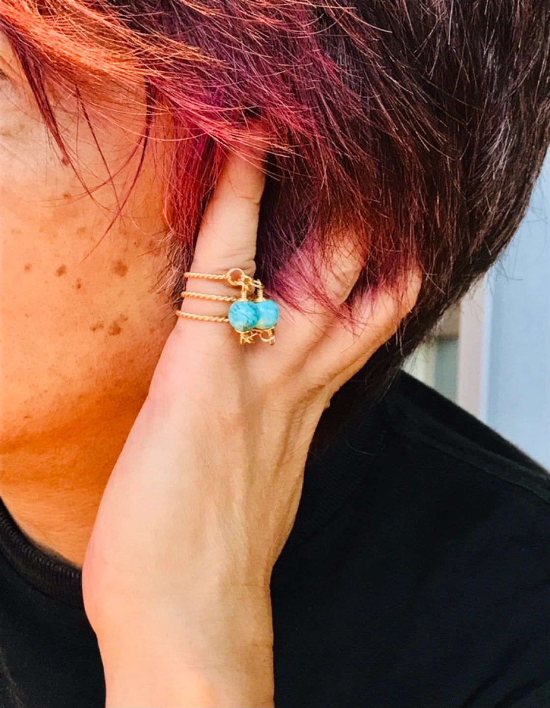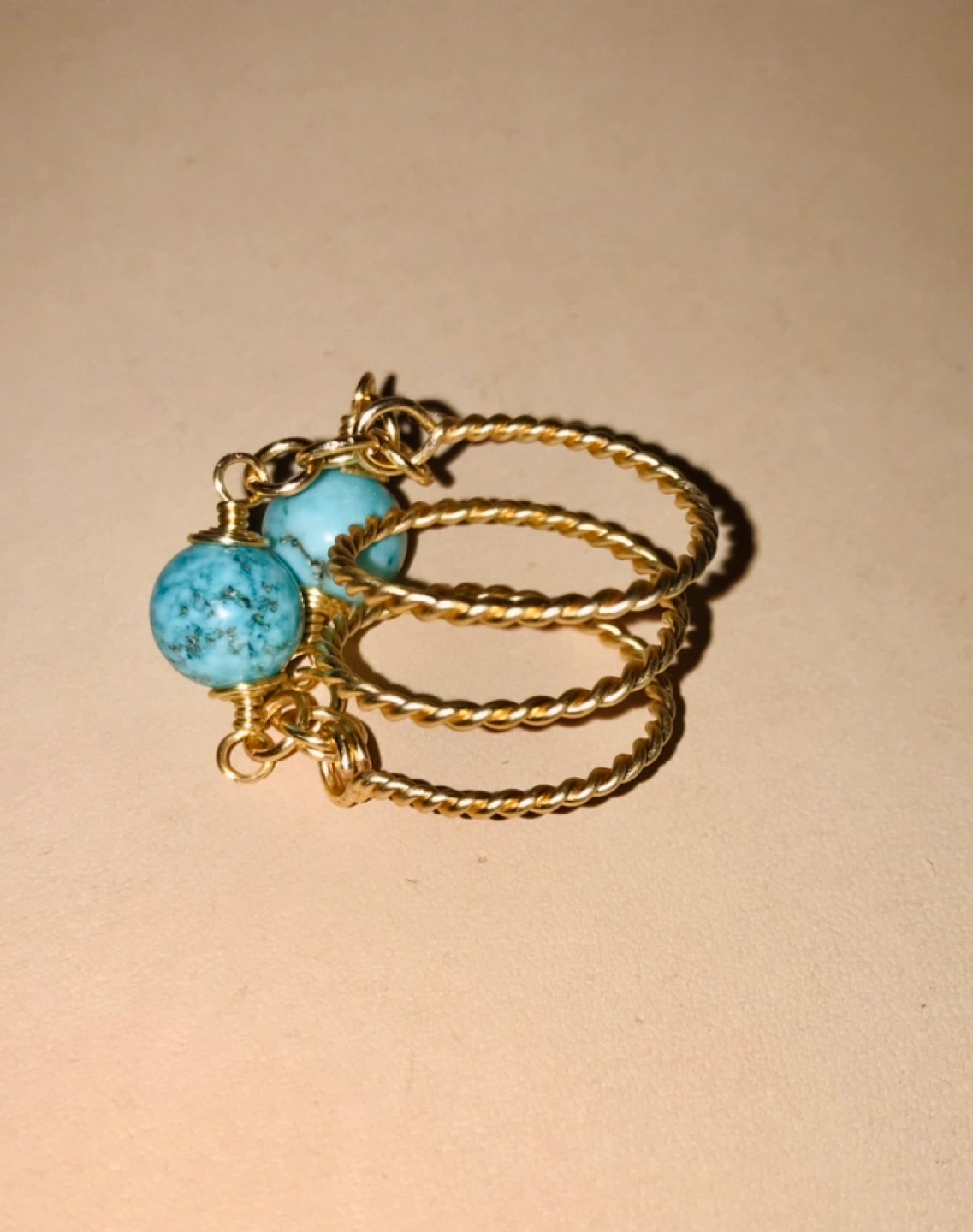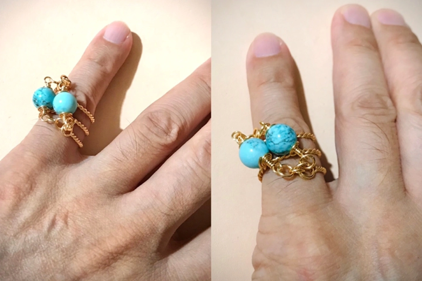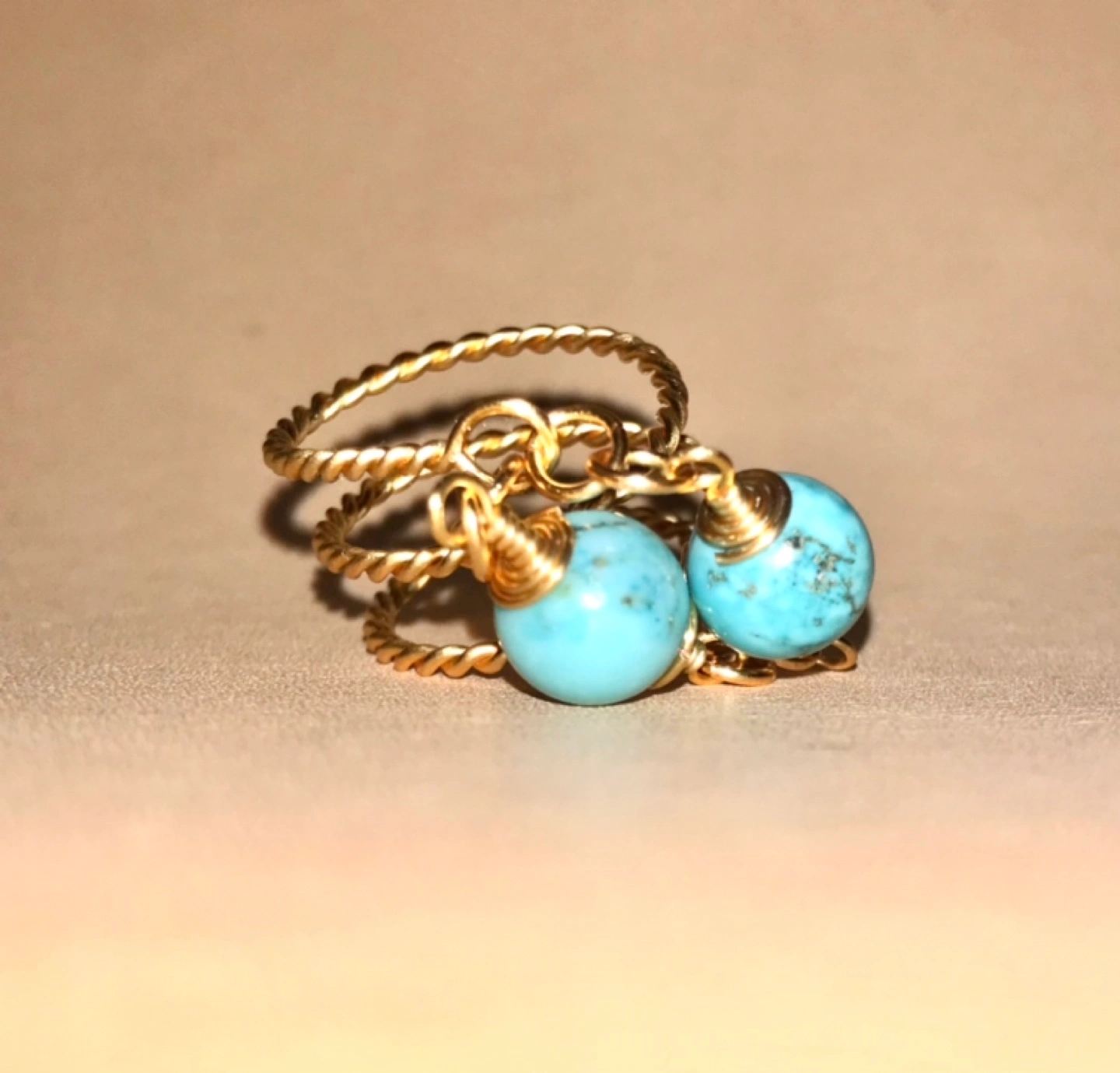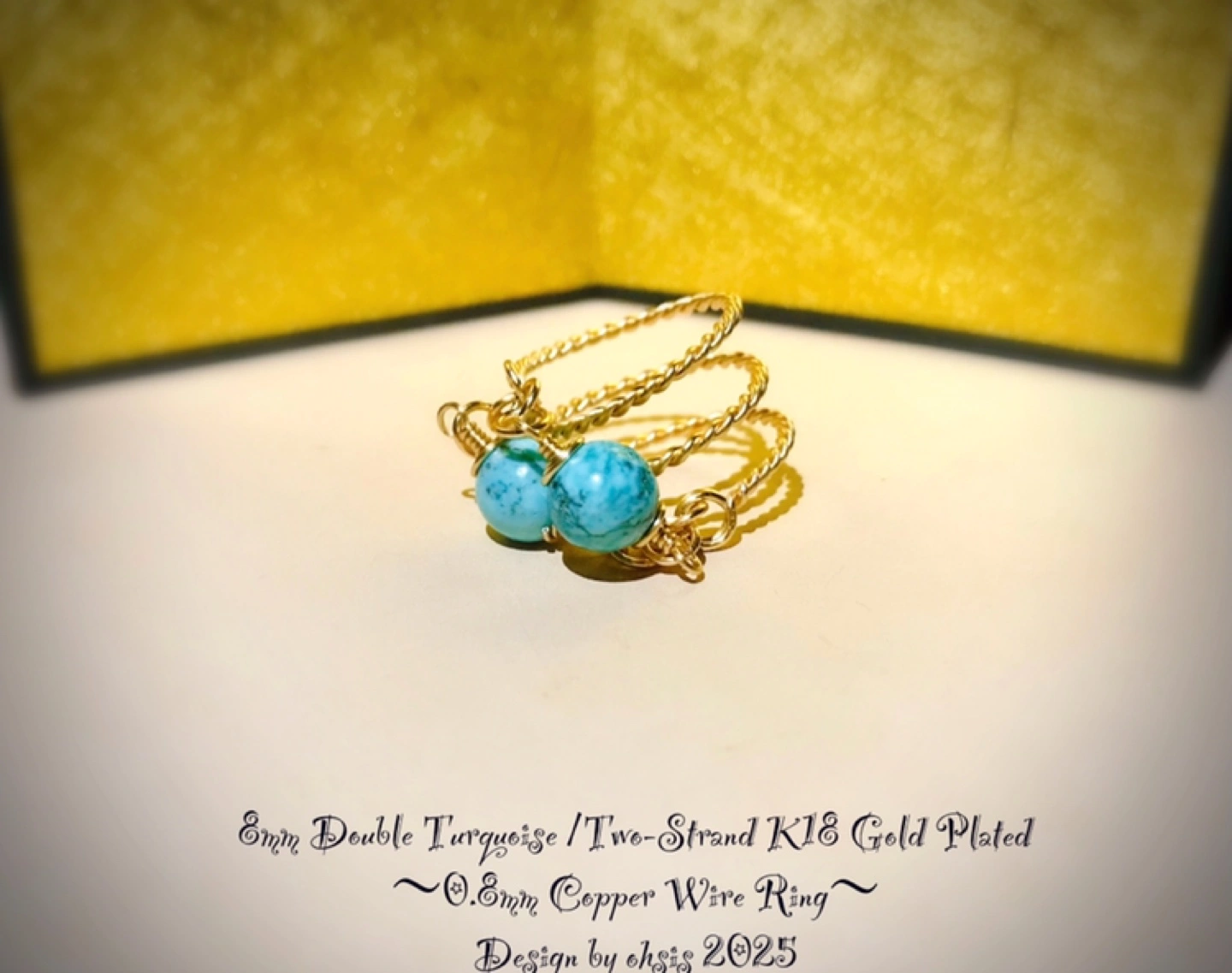 NEW DESIGN ハンドメイドのWターコイズリング8mm〜2本縒りK18GP