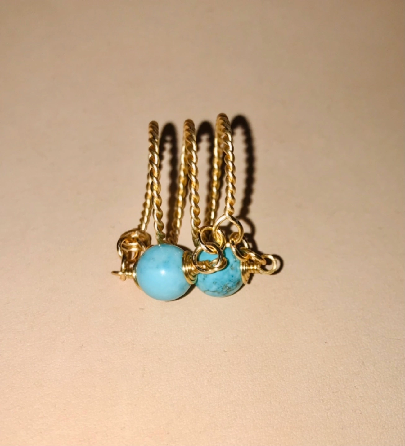 NEW DESIGN ハンドメイドのWターコイズリング8mm〜2本縒りK18GP ハンドメイドのWターコイズリング8mm〜2本縒りVer.size free 写真にてご判断ください。 製作過程で何回か試着しておりますが、美品です。 ターコイズ8mmダブルで存在感あります。 ターコイズはそれぞれ動きを生かす為に完全には固定はされていません。 ◯サイズフリーですが、フレキシブルな範囲は少しだけです…