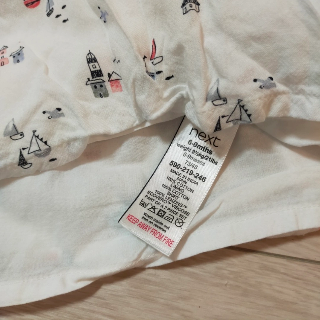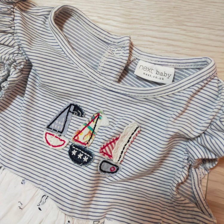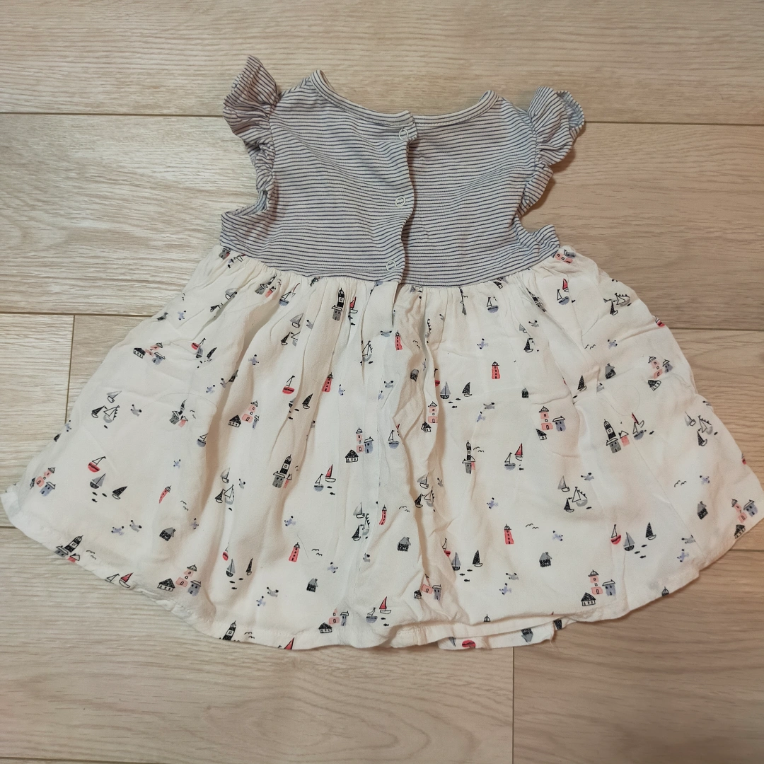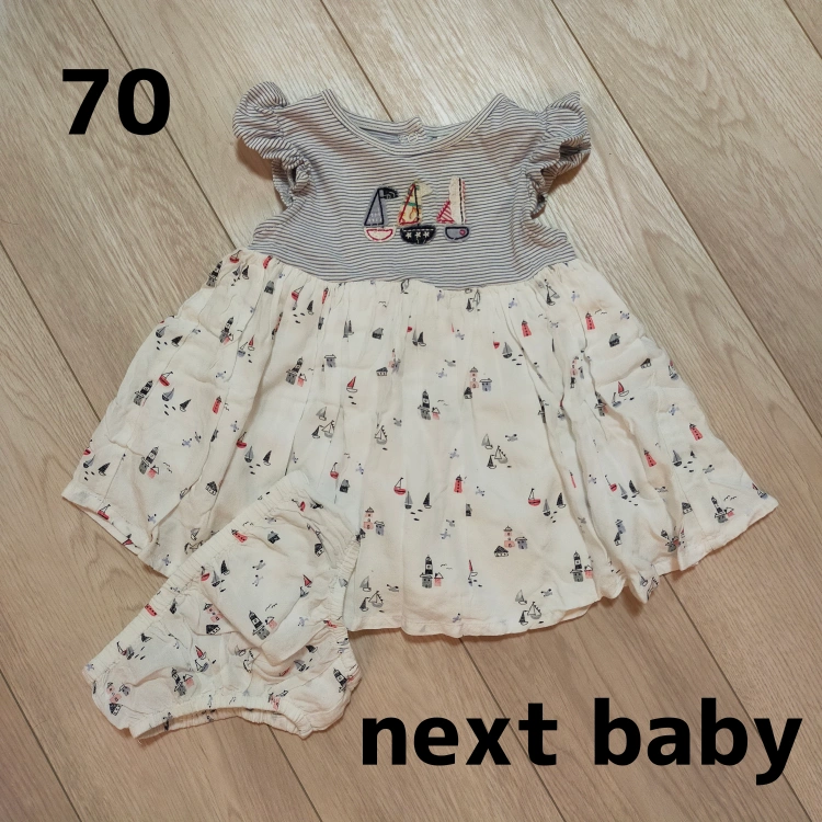 next babyのフレアワンピースとパンツとのセットです。 スカートには裏地もついてふんわりとしたシルエットになります♫ヨットの刺繍も可愛いです(*^^*) サイズ…6-9month(約70cm) 袖丈...ノースリーブ ****** 子供服は、着つぶしたもの、汚れのひどいものは基本出品しておりません。 まだまだ着ていただけそうなもののみ出品するようにしておりますが、あくまで中古品であること、子供が使用したものであることをご理解の上ご購入いただけますようお願いいたします(^^)