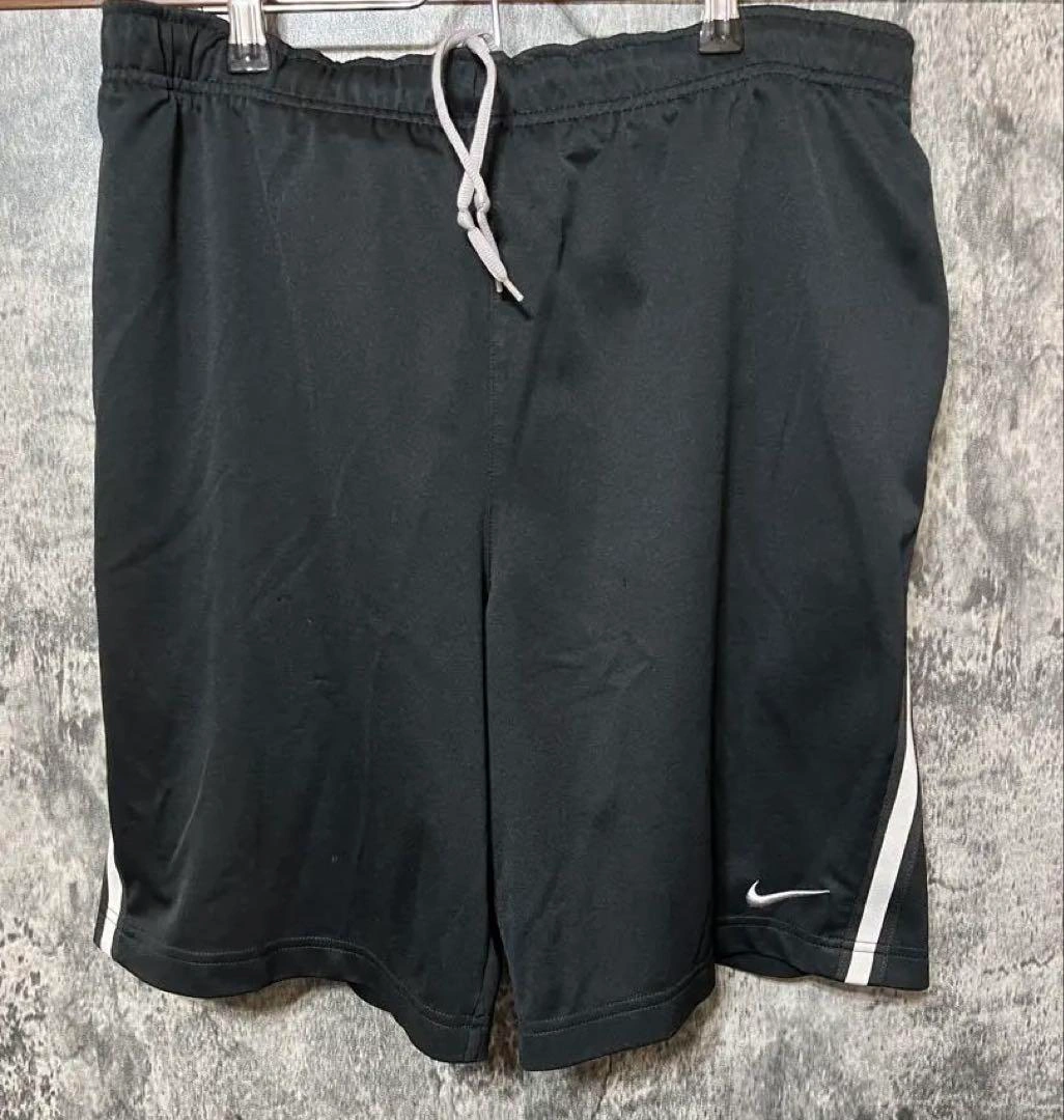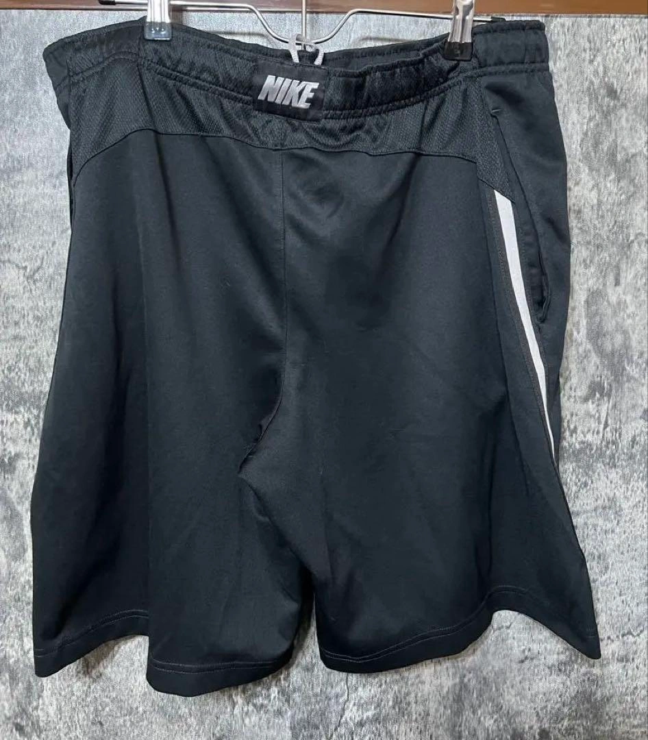 サイドに薄い灰色ラインが特徴のNike製ブラックショートパンツです。 使用感があります。 ブランド: Nike サイズ: M カラー: ブラック 特徴: ウエストにドローコード ウエスト/ヒップ/股上/股下 ウエスト···50cm ヒップ···55cm 股上···30cm 股下···24cm カラー···ブラック系 汚れ・破れ・臭いなど···なし ご希望の方はお気軽にご連絡ください。