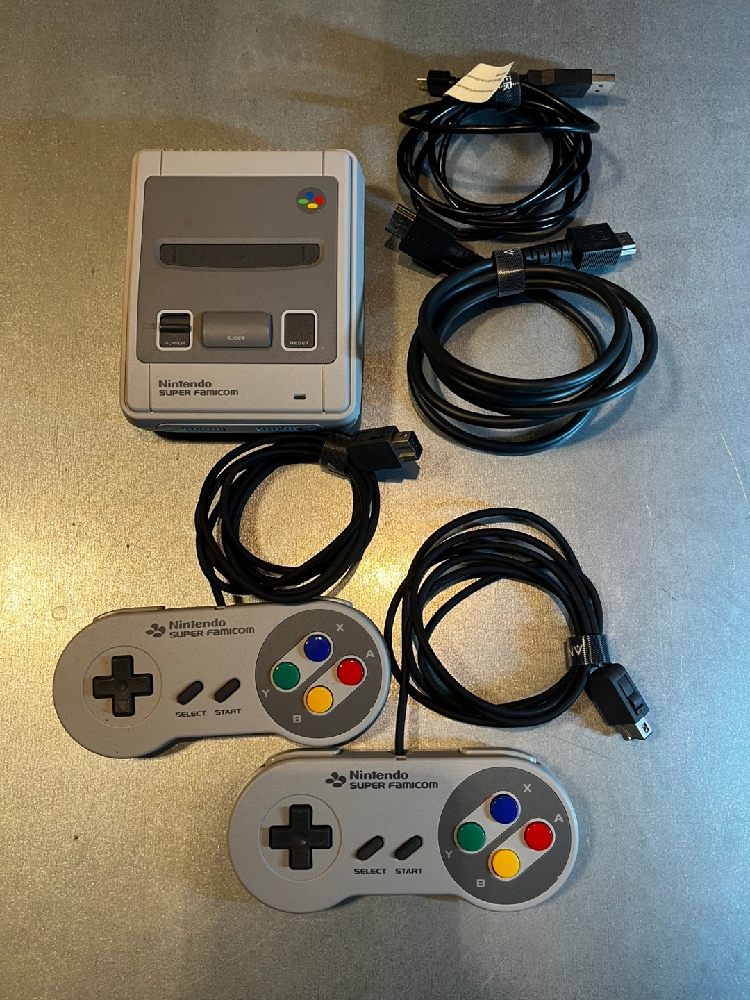 懐かしく新しいスーパーファミコン 付属のHDMIケーブルでテレビとつなぐだけの簡単接続。 懐かしのスーパーファミコンソフトを20タイトルと未発売の1タイトルを合わせた21タイトル収録。 <内容物> 本体1台 専用コントローラー2個 ハイスピードHDMIケーブル1本 USBケーブル(電源供給用)1本 <収録タイトル一 覧> スーパーマリオワールド F-ZERO がんばれゴエモン 超魔界村 ゼルダの伝説 神々のトライフォース スーパーフォーメーションサッカー 魂斗羅スピリッツ スーパーマリオカート スターフォックス 聖剣伝説2 ロックマンX ファイアーエムブレム 紋章の謎 スーパーメトロイド ファイナルファンタジーVI スーパーストリートファイターII スーパードンキーコング スーパーマリオ ヨッシーアイランド パネルでポン スーパーマリオRPG 星のカービィ スーパーデラックス スターフォックス2