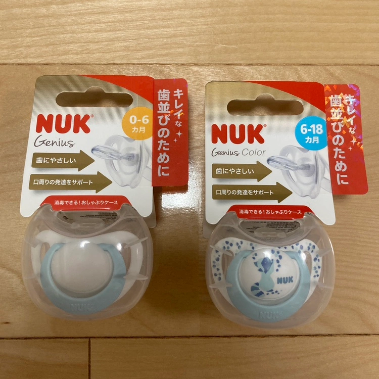 ⭐️出品している1001円以上のベビー用品、マタニティ用品も一緒に購入して頂けたらこちらを500円にお値下げ致します☺︎ どちらも未使用のおしゃぶりです。 0〜6ヶ月用のものと、6ヶ月〜18ヶ月用のもののセットです。 水色のものなので男の子向けかなとは思いますが女の子も是非! とても良い製品なようで購入していたのですが、すっかり忘れて新しいものを購入してしまいましたのでこちらは使うことがありませんでした。