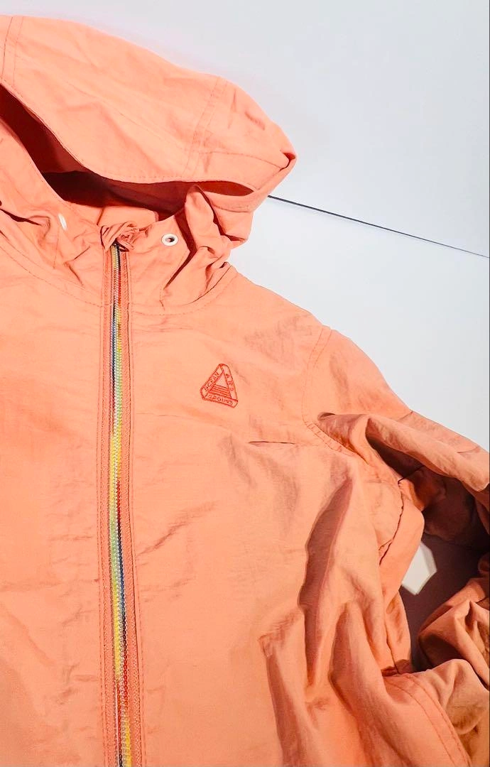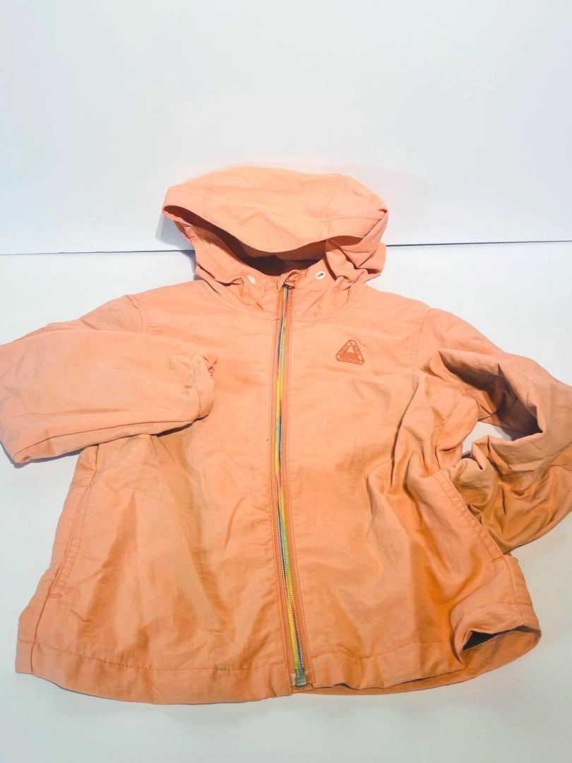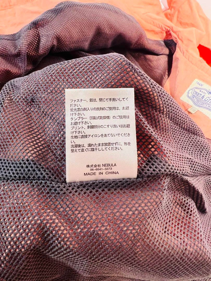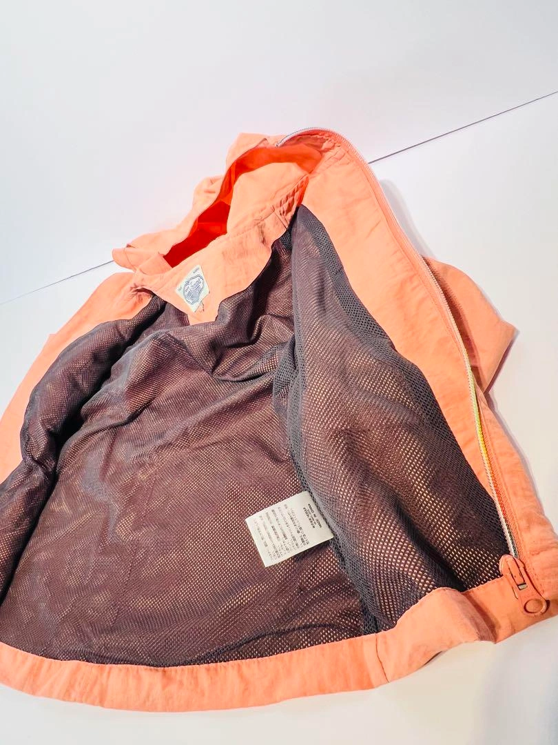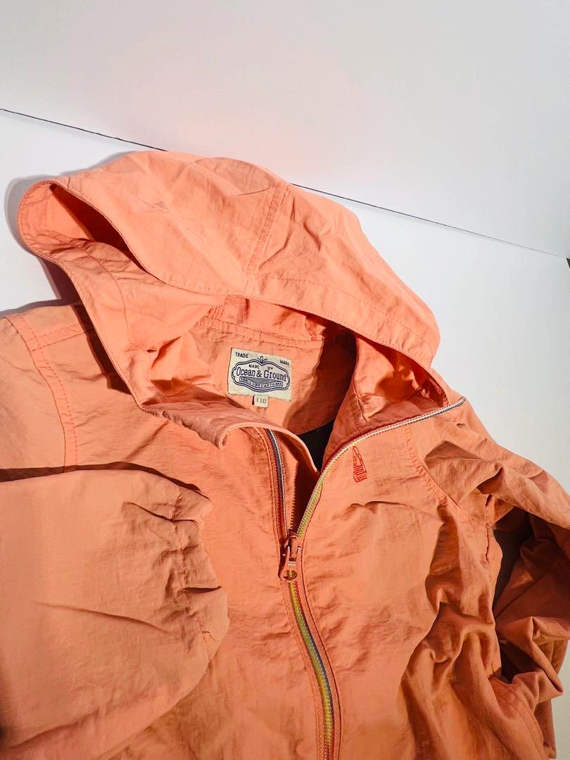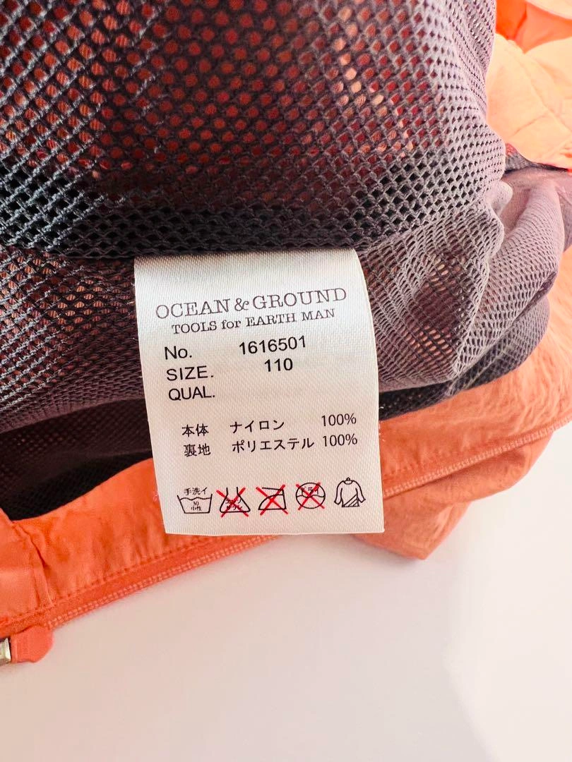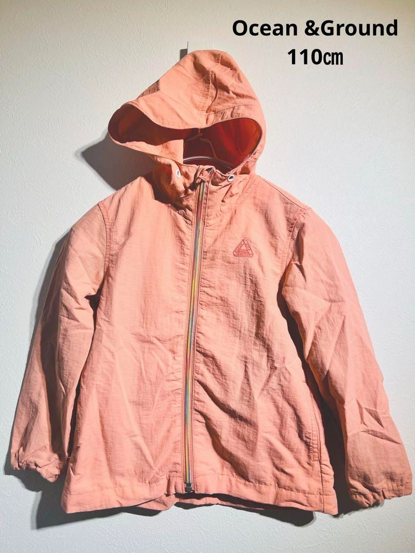オーシャングラウンドのナイロンパーカーです。 色はピンクで、サーモンピンクに近い色味です。 目立った汚れや傷などはありません。 記名等もございません。 サイズは110㎝です。 色はサーモンピンクです。 シャカシャカした素材ですが、肌触りは硬くはありません。 性別は女の子向けです。 ご希望の方はお気軽にご連絡ください。