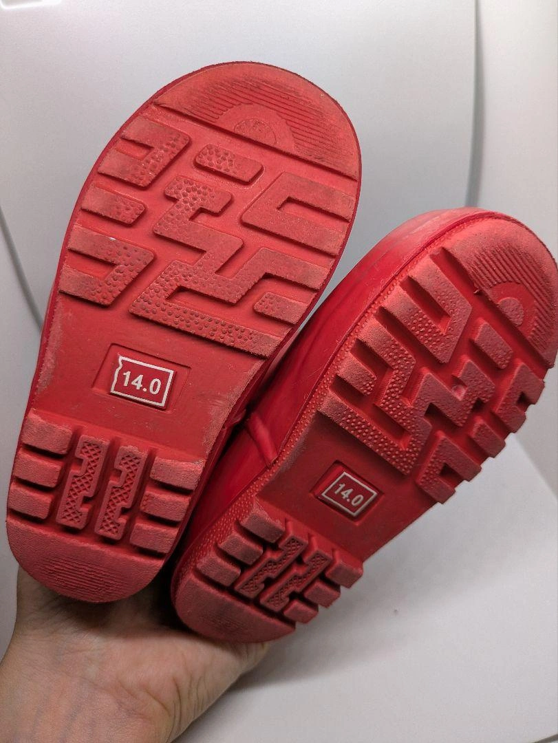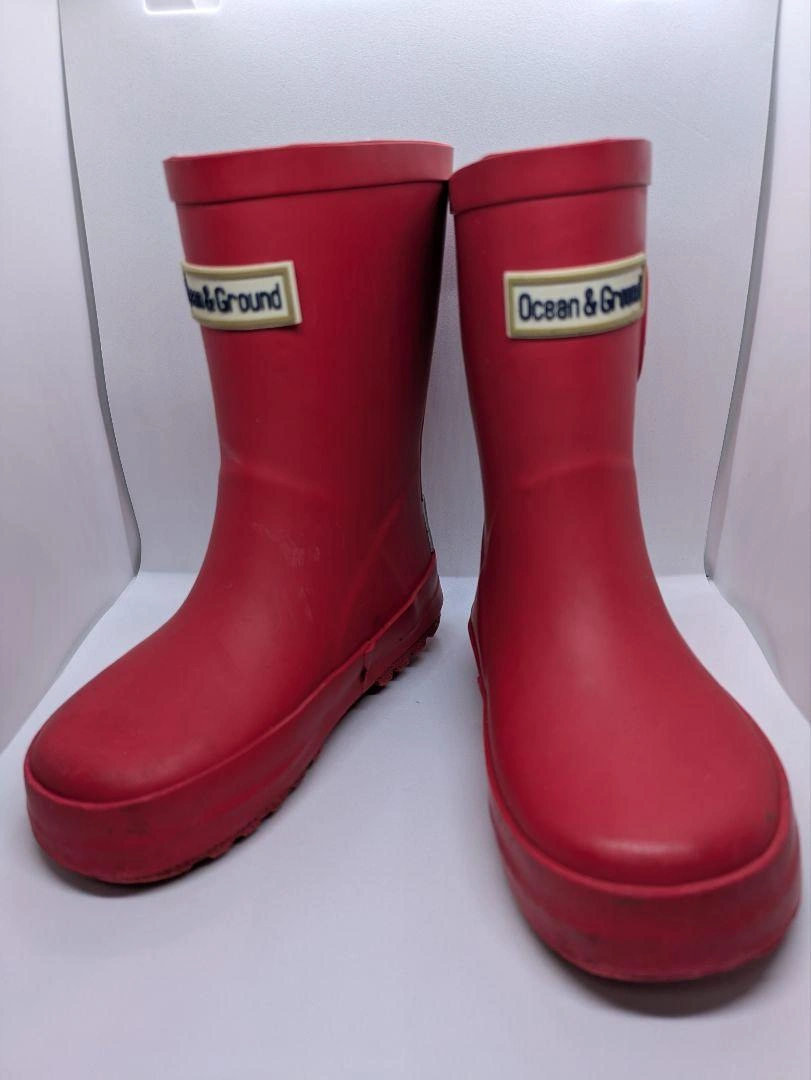 Ocean & Groundのバックル付き赤いゴム製長靴です。雨の日にいかがでしょうか。 細かい傷や汚れはありますが、まだお使いいただけると思います。 サイズは14cmです。 中古品にご理解いただける方にご連絡いただけると嬉しいです。