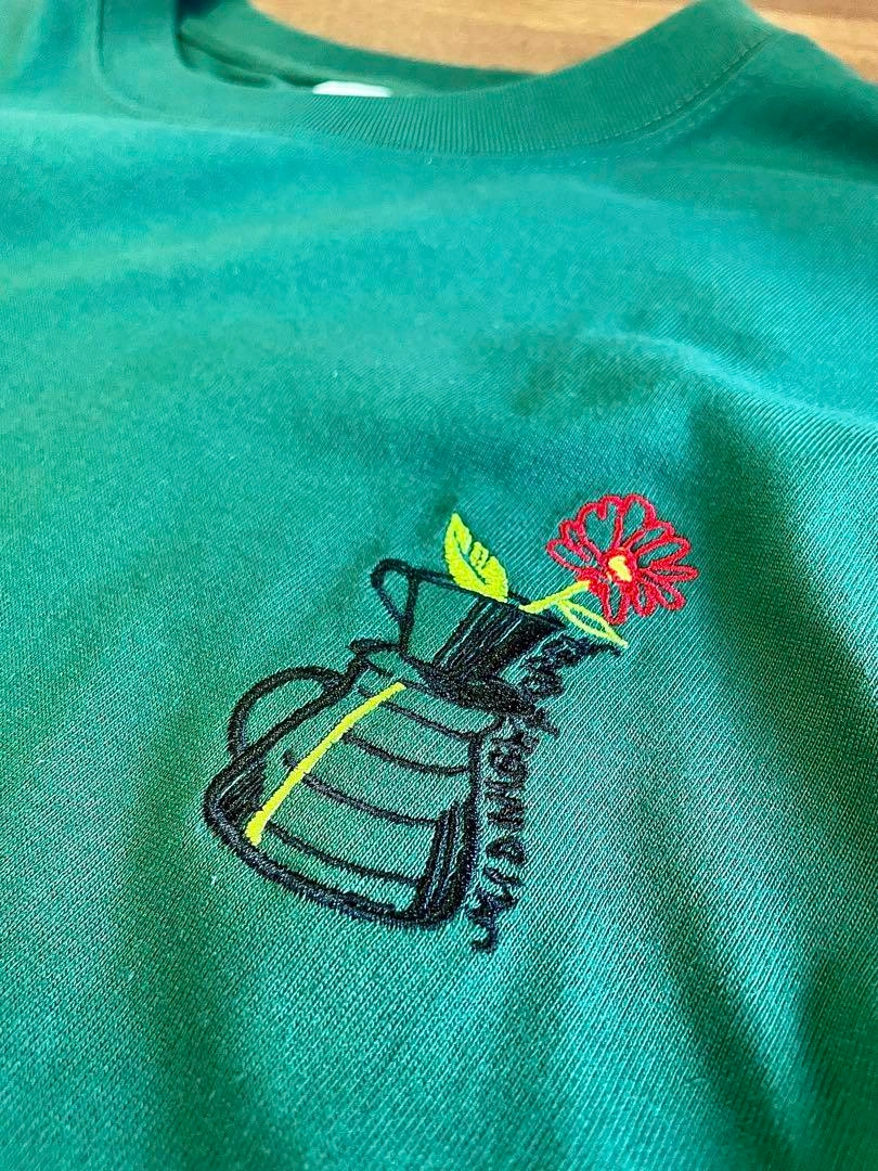あたたかさOniOn sliceをご覧いただきありがとうございます。 一輪の花をコーヒーサーバーに刺すデザインが刺繍で施されたTシャツです。 ボディは鮮やかなグリーンで、随所にこだわりを感じます。 material:Cotton 100% brand:MIDNIGHT BREW size:M color: みどり ご希望の方はお気軽にご連絡ください。