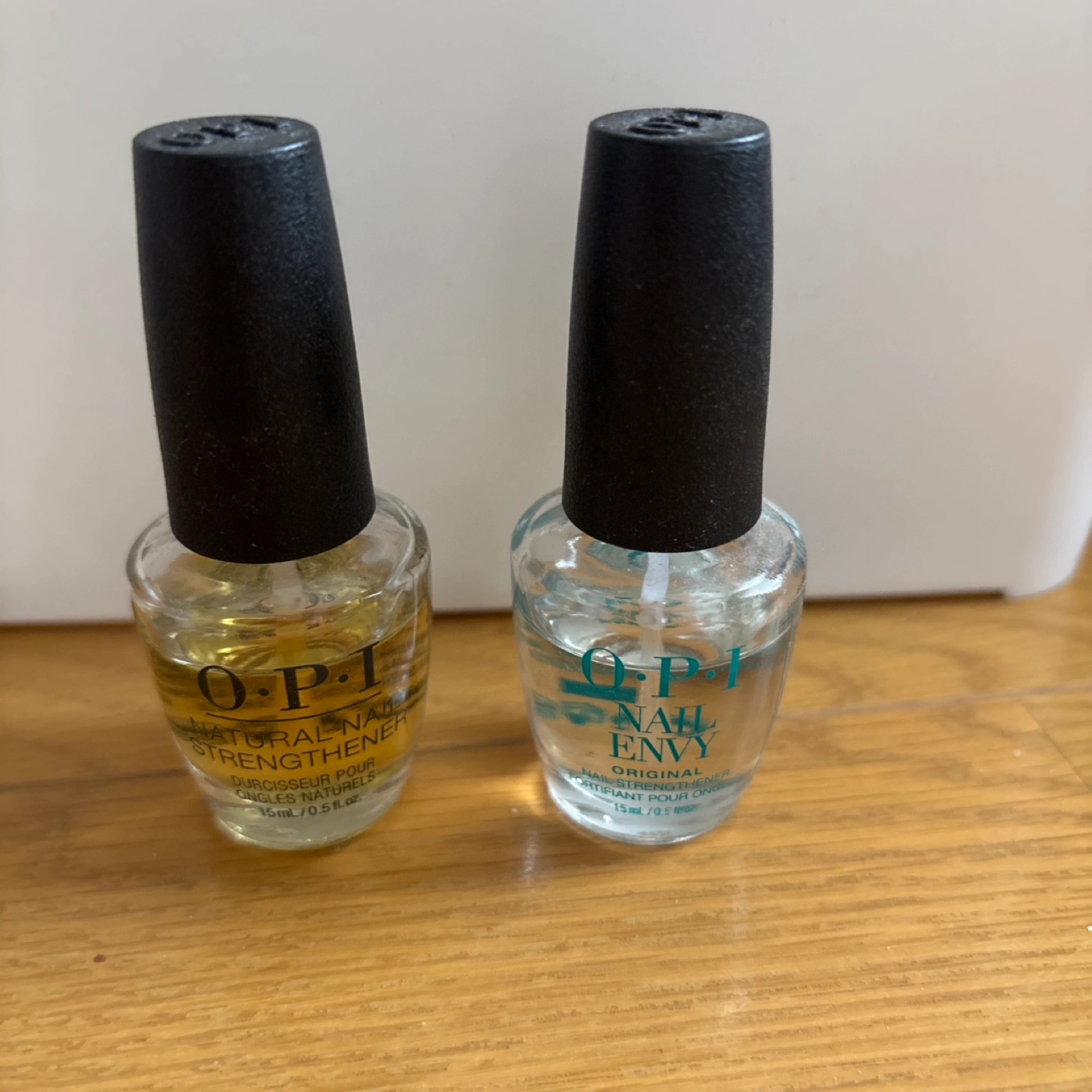 【ブランドと製品名】 ①O.P.Iのナチュラルナイルスプリングスナー ②O.P.Iネイルエンビー 爪を強化し、健康的な状態を保つためのベースコートです。 【使用方法】 ①爪を保護し、強化するためのベースコート ネイルケアの基本として、マニキュアの前に塗布することをお勧めします。 ②二枚爪や割れやすい爪を、層を重ねることで外的環境から保護し、耐久性のある爪にします。 2024年2月にネイルショップで購入 残量は画像にてご確認をお願いいたします。