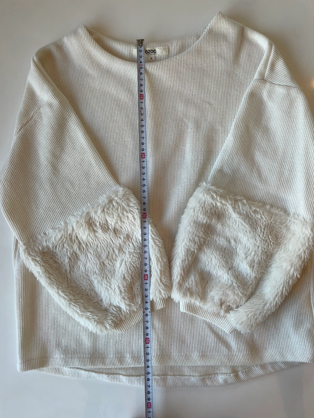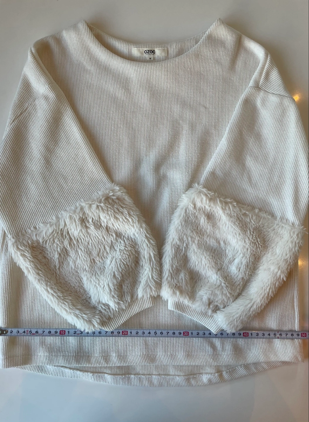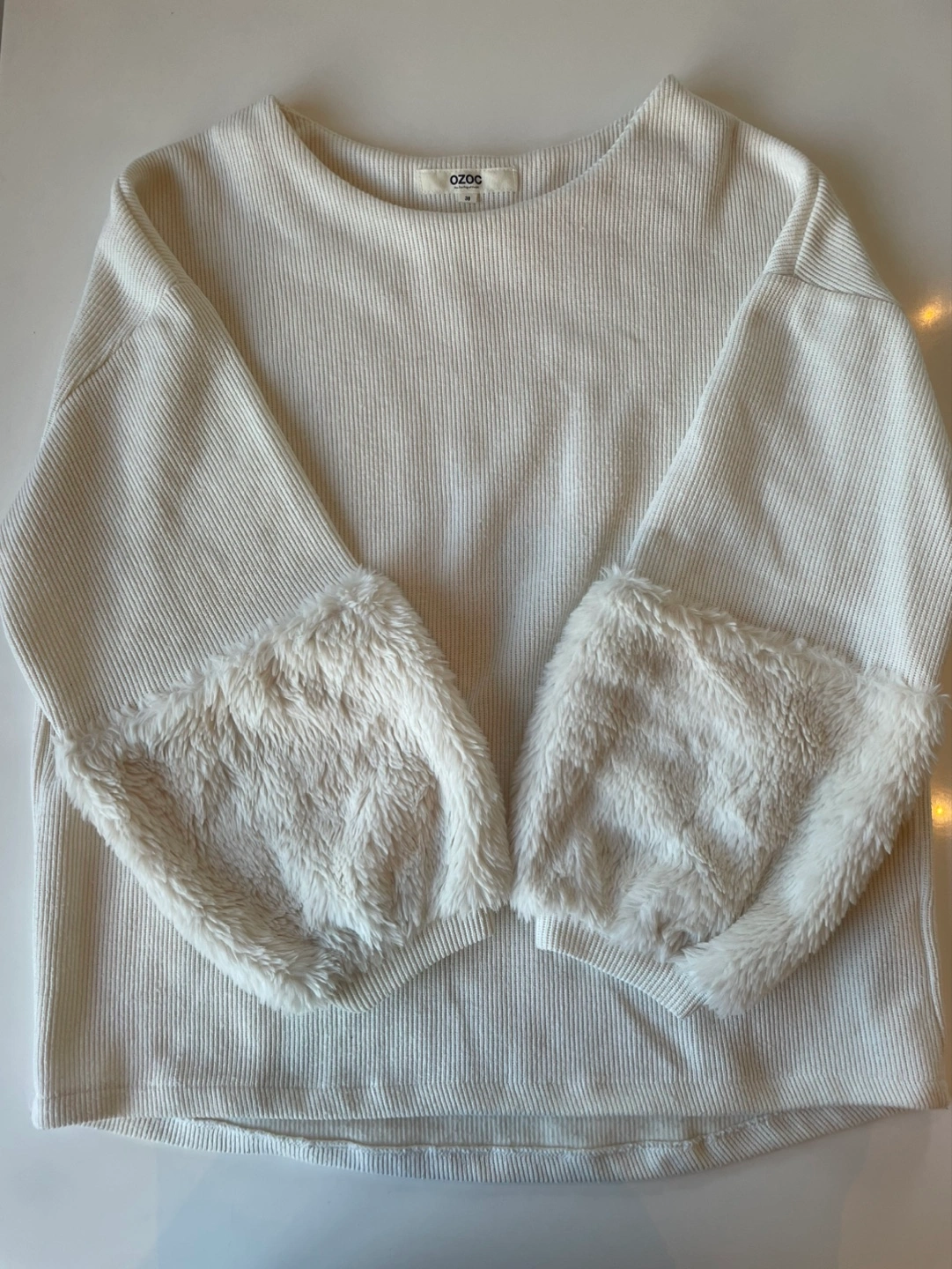 【デザイン】 アイボリートップスにファー素材の袖が特徴的でカジュアルながらも可愛いいデザインです。 【素材】 生地は柔らかく着心地が良いです。ファー部分はふわふわしており見た目にも暖かさを感じさせます。 【サイズ感】 ゆったりとしたシルエットがリラックスした印象を与えます。 - 色: アリボリー - 素材: リブ編み、ファー ご覧いただきありがとうございます。 注意事項:自宅にて保管していました。 中古品であるということをご理解いただきご購入をお願いします。