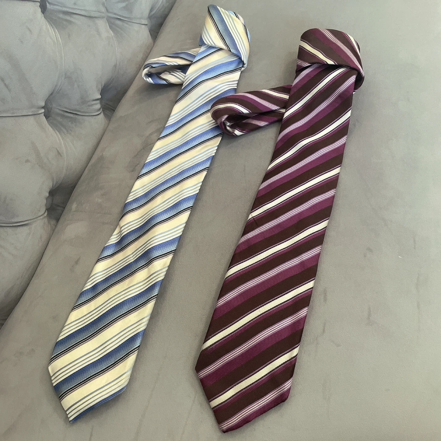 P.S.FA パーフェクトスーツファクトリーのネクタイです。 ブルー系とパープル系のストライプ柄 2本まとめて出品します。 ブルーの方はよく見ると若干の黄ばみがあります。 パープルの方は美品です。 どちらもまだまだ使用できます。 裏地はドットです。 サイズ150×8㎝(最も太い部分) 青 水色 紫 紺 ネイビー ラベンダー 白 縞模様 スーツ フォーマル カラー···ネイビー系 カラー···ブルー系 柄・デザイン···ストライプ 月島駅まで取りに来てくださる方にお譲りいたします。