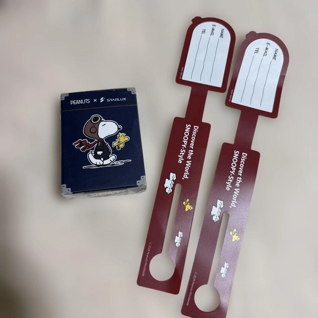 スヌ ーピーの飛行帽デザインのトランプと荷物タグ2個セットです。 トランプは未開封、タグは細かいキズや曲がってることがあります。 ご希望の方はお気軽にご連絡ください。