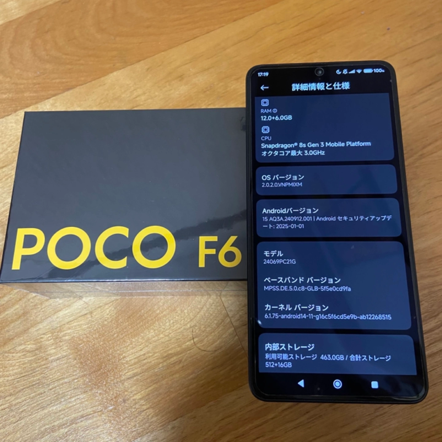 POCO F6 12GB/512GB SIMフリー グローバル版 POCO F6 (Xiaomi) BLACK SIMフリー (物理SIM × 2)eSIM非対応 OS:Android (Xiaomi HyperOS) ディスプレイ:6.67 インチ 解像度 2712 x 1220 CrystalRes 1.5K Flow AMOLED DotDisplay SOC:Snapdragon 8s Gen3 Antutu:152万点 RAM:12GB ROM:512GB カメラ:REAR:50MP+8MP FRONT:20MP 指紋センサー:○(画面内) おサイフケータイ:非対応 USB:Type-C バッテリー:5000mAh 90W ハイパーチャージ対応 サイズ:高さ: 160.5mm 幅: 74.4mm 厚さ: 7.8mm 重量:179g 付属品:柔らかい素材の保護ケース アダプターとケーブル コンセント変換アダプター Amazonでも6万円程で売られております。 ※2/27 現在 ※写真の画面は私の使っている実機や付属品を載せております。 出品物は新品未使用未開封です。 カメラのセンサーは異なっておりProよりも性能は落ちますが、一方でインカメラは2000万画素を搭載しており、POCO F6 Proの1600万画素より高画素です。 カメラの性能を除きスペックはほぼ同等です。 こちらはメモリー12GB ストレージ512GB のF6でも上位機種でコスパ最強スマホです。 カメラに特にこだわりがなく使う分には処理速度の速さなどに驚くと思います! ゲームで使うにも必要充分に思います。 充電も付属のアダプターを使えば物凄く早いので仕事用にも良いかと。 iPhone は高過ぎる。。。 お子様用に少し良い物を。 コスパ良過ぎてかなりおすすめです。 SIMカードを入れればすぐにお使い頂けるかと思います。 Redmi Turbo X7 13 14 15 16 13T 14T ultra シャオミ SAMSUNG GALAXY ギャラクシー motorola razr SHARP シャープ AQUOS アクオス Apple アップル Google Pixel ピクセル SONY ソニー Xperia エクスペリア FCNT arrows Huawei ファーウェイ
