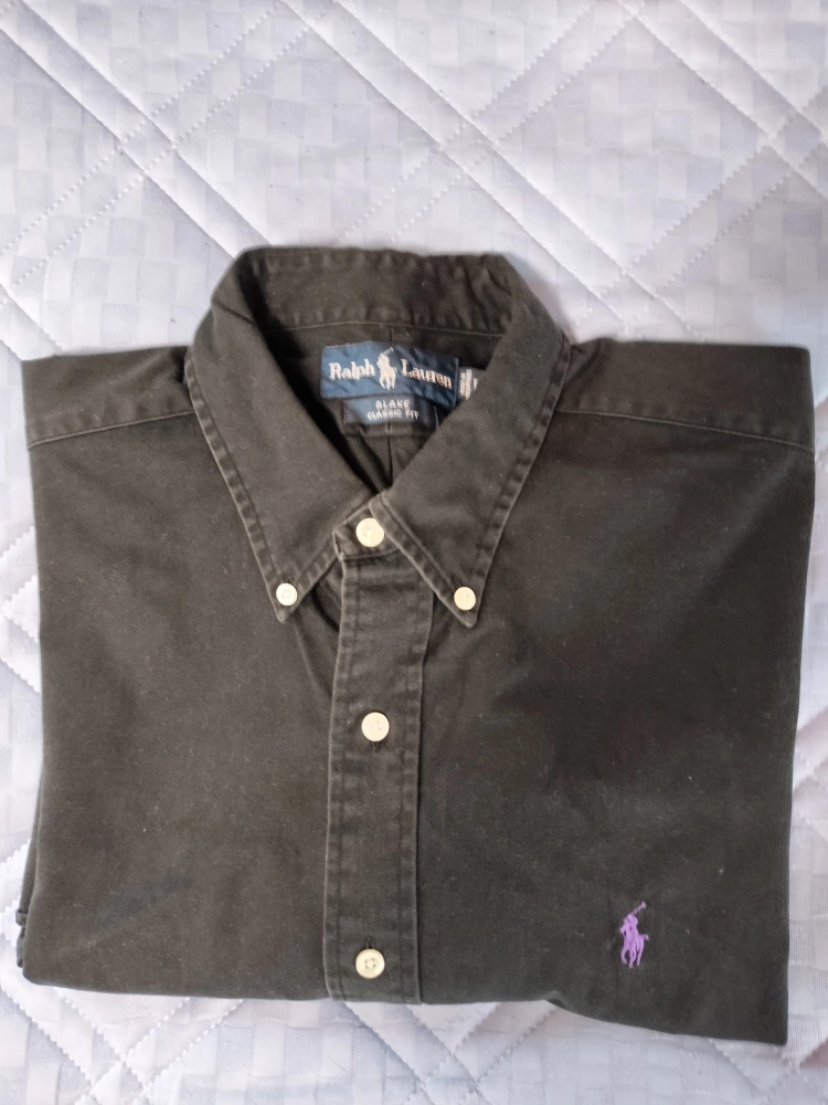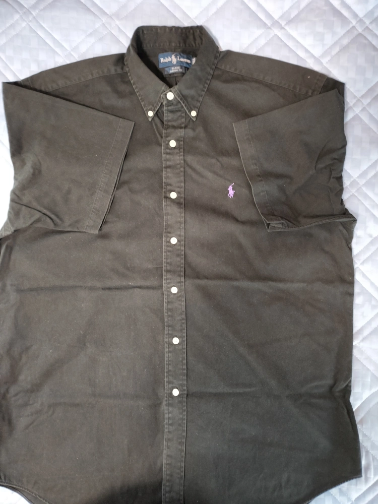 8年ほど前に購入した本物のPOLOの半袖シャツ、色は黒です。生地は少し厚手です。 商品状態:3回着用・衣装ケース保管 ブランド:POLO by Ralph Lauren 素材:綿100% サイズ:着丈80㎝×身幅64㎝ USAサイズなので大きめになります。日本人サイズですと3Lくらいになります。 中古品であるということをご了承の上、ご購入ください。 ご不明点等ございましたらご連絡ください。