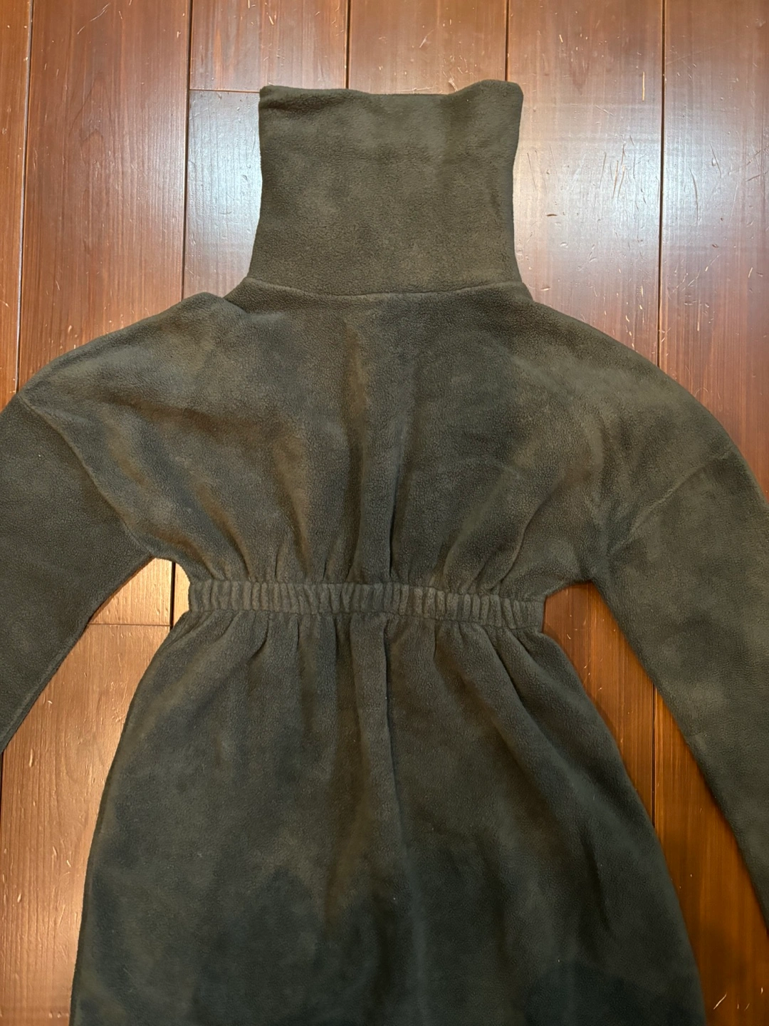 20年以上前に購入したものです。 何度も着用しておりますが、珍しいデザインで、汚れもなくまだ着用できるので欲しい方にお譲りします。 usedとご理解の上ご購入ください。 猫を飼っておりますので、猫アレルギーのある方はご注意ください。 ウエストゴム内側(画像6)がちょっとだけほつれていますが着用には問題ありません。気になる方は繕ってください。 着用すると、ウエストゴム部がちょうど胸の下辺りになります。 着るととても暖かいです。 サイズS(細身で155cmの身長でちょうどくらいです) 実寸 (全て平 置きで採寸。誤差はご了承ください) ウエストゴム部幅 約33.5cm 裾幅 約56cm 着丈 約74.5cm 袖丈(肩の縫い目から袖口まて)約53cm 素材 ポリエステル100% #preen #デザイントップス #あったかフリース #フリースワンピース
