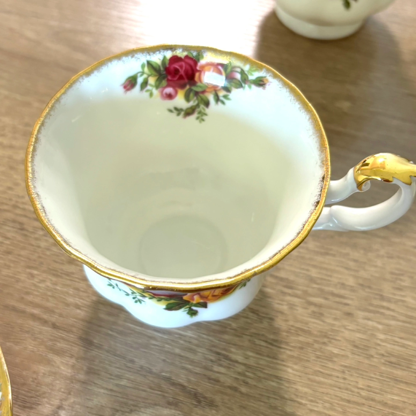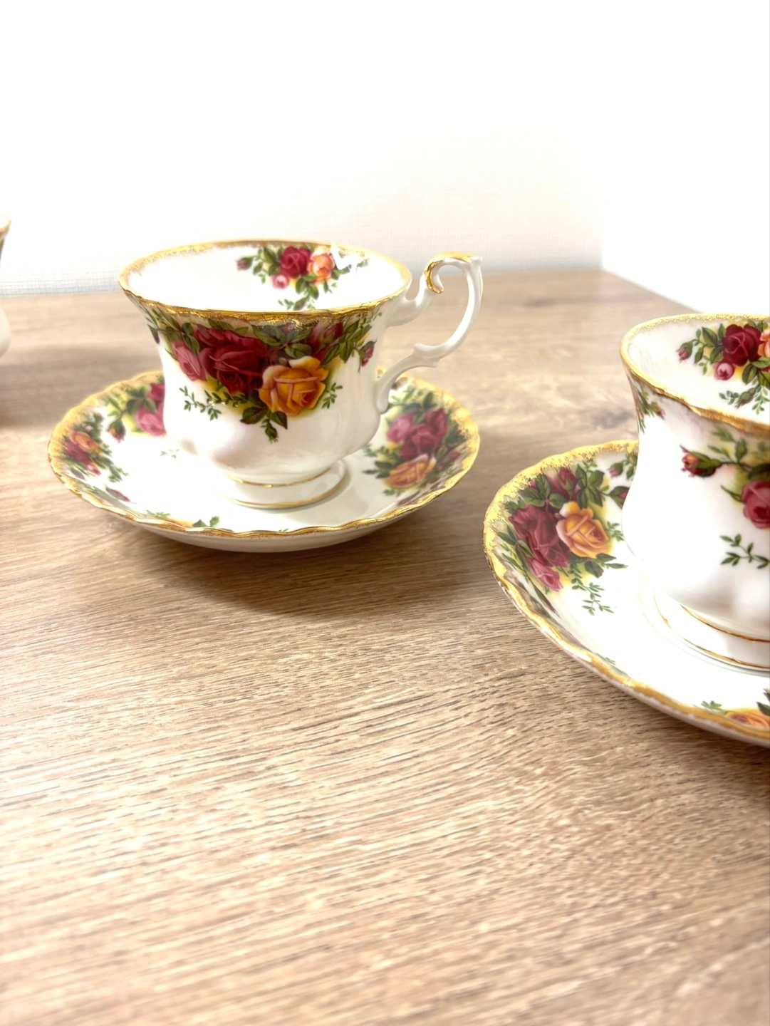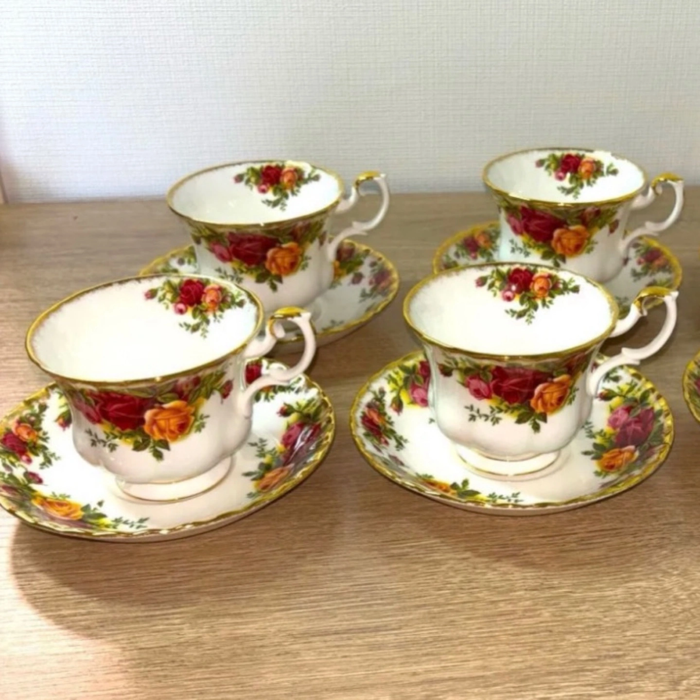 英国の老舗ブランド【Royal Albert】の定番人気シリーズ「Old Country Roses(オールドカントリーローズ)」のカップ&ソーサー6個セットです。 深みのある赤・ピンク・黄色のバラと金彩があしらわれた、華やかでクラシックなデザイン。おもてなしや特別な団欒に映える一枚です。 【サイズ(おおよそ)】 カップ:口径 約8.5cm/高さ 約7cm ソーサー:直径 約14cm 数量:4セット(カップ4個+ソーサー4枚) 【状態】 未使用ですが自宅保存です。 ヒビ・欠け・金彩の剥がれなどもほとんどなく、全体的に良好なコンディションです。あくまで中古品としてご理解ください。 破損防止のため丁寧に梱包し、お渡しします。 引っ越しの為、他にも色々出品しております。 複数で割引致しますので、ご相談ください お引き渡しは、鶴ヶ峰駅、西谷駅でも可能です。 その他の商品と合わせて複数個ご購入の方、 お近くでしたら車でお持ちいたします。