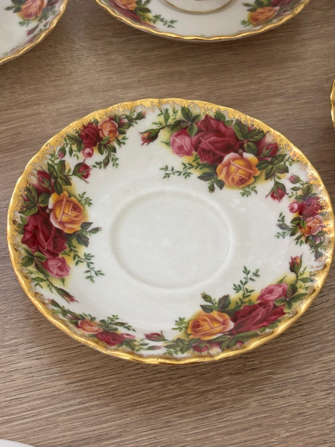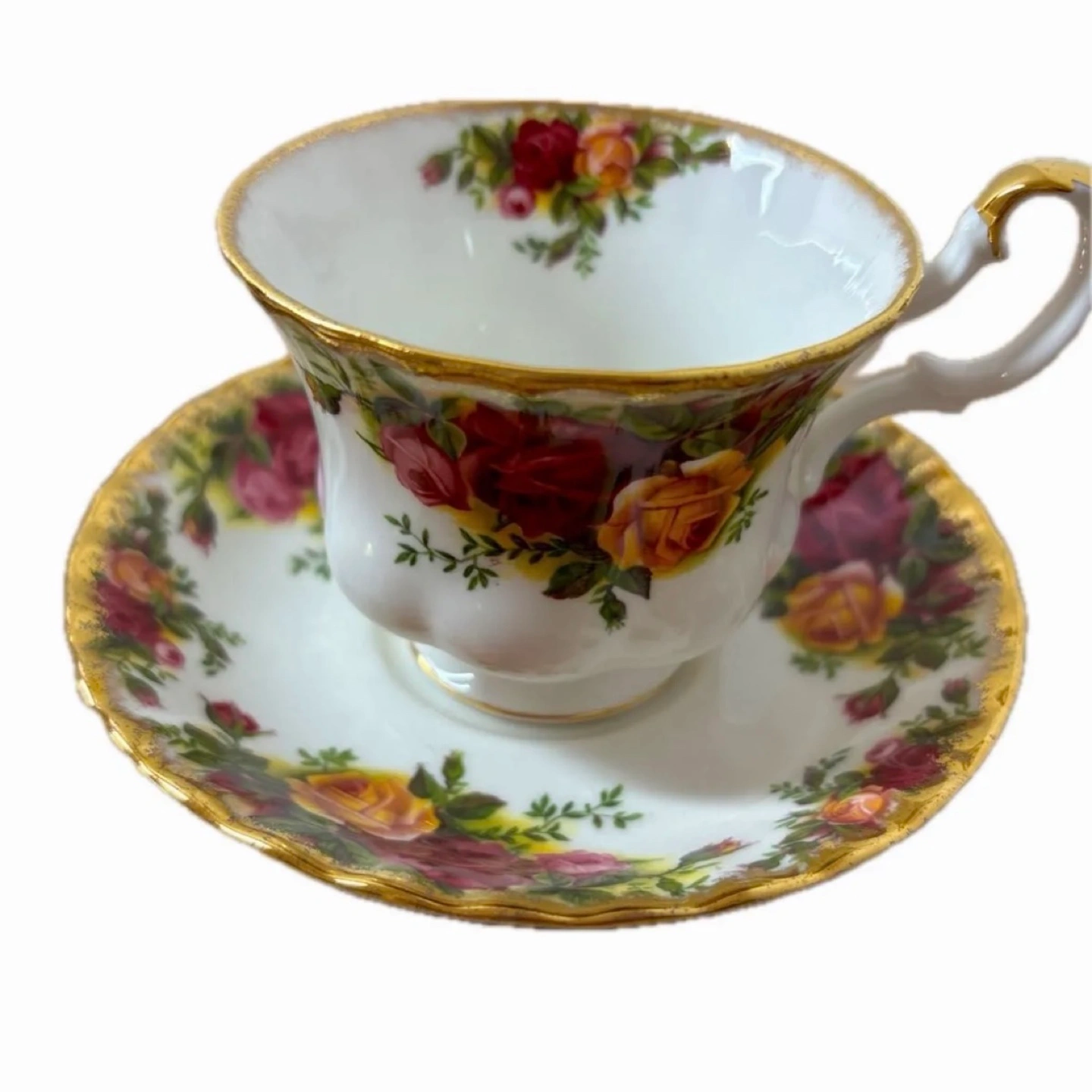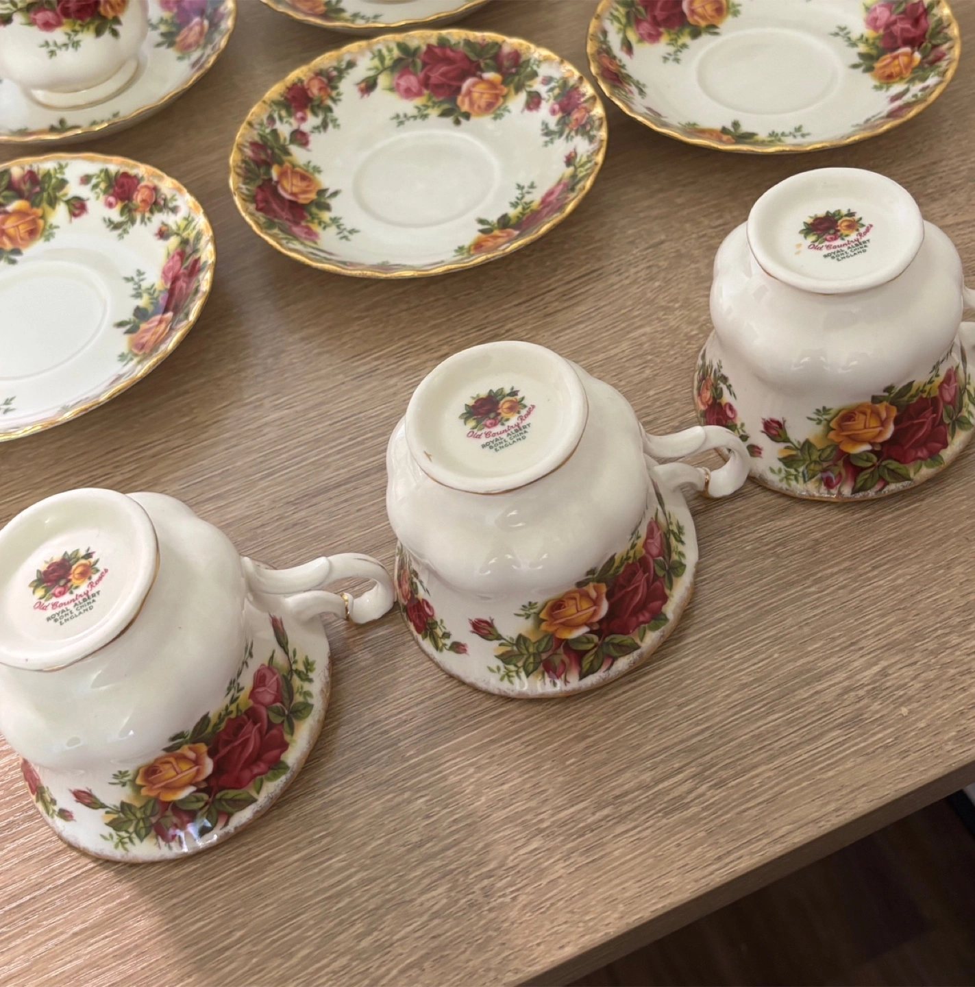 英国の老舗ブランド【Royal Albert】の定番人気シリーズ「Old Country Roses(オールドカントリーローズ)」のカップ&ソーサー6個セットです。 深みのある赤・ピンク・黄色のバラと金彩があしらわれた、華やかでクラシックなデザイン。おもてなしや特別な団欒に映える一枚です。 【サイズ(おおよそ)】 カップ:口径 約8.5cm/高さ 約7cm ソーサー:直径 約14cm 数量:4セット(カップ4個+ソーサー4枚) 【状態】 未使用ですが自宅保存です。 ヒビ・欠け・金彩の剥がれなどもほとんどなく、全体的に良好なコンディションです。あくまで中古品としてご理解ください。 破損防止のため丁寧に梱包し、お渡しします。 引っ越しの為、他にも色々出品しております。 複数で割引致しますので、ご相談ください お引き渡しは、鶴ヶ峰駅、西谷駅でも可能です。 その他の商品と合わせて複数個ご購入の方、 お近くでしたら車でお持ちいたします。