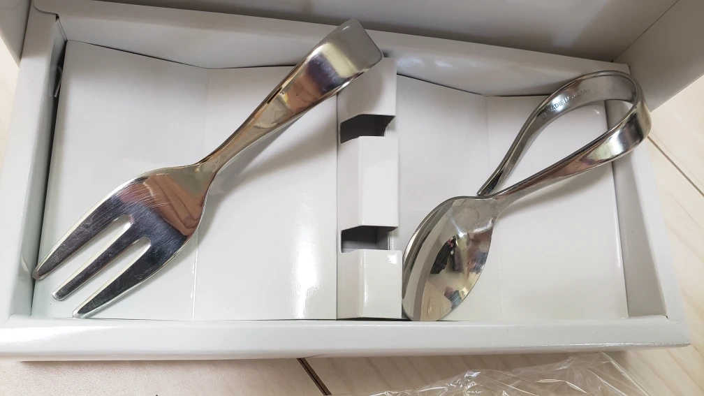 ご覧いただきありがとうございます☆ 食器で有名な燕三条のsaks&coのベビースプーン&フォークです。 ステンレス18-8になります。 箱付き。 一歳くらいの時にスプーン&フォークに慣れるため数回使用させました。洗浄等している為、細かい傷があるかと思いますが、まだまだお使い出来ますので短い期間なので中古でいいという方にお譲り致します。 お安く出品しておりますのでお値下げ不可になります。 ドタキャンされない方でお願いします。(通報&ブロックします) ご不明点等ございましたらお気軽にお問い合わせ下さい。 他のサイトでも出品中です。