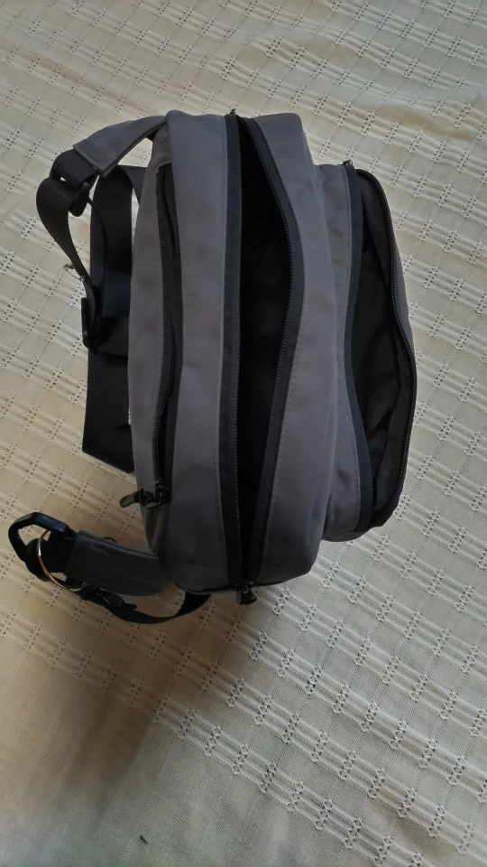 SCANDINAVIAN FORESTのバック 海外旅行へ行く時に1回使用しました。収納が3箇所有り、大きな収納には1箇所のファスナーポケット付きで、とても重宝しました。 もう年齢的にも、体力的にも海外旅行はしないので、 また、日常は使用しないタイプのバックなので、新しいうちに手放したいと思ってます。 幅27cm 高さ17cm 奥行き12cm(前ポケットも含む)