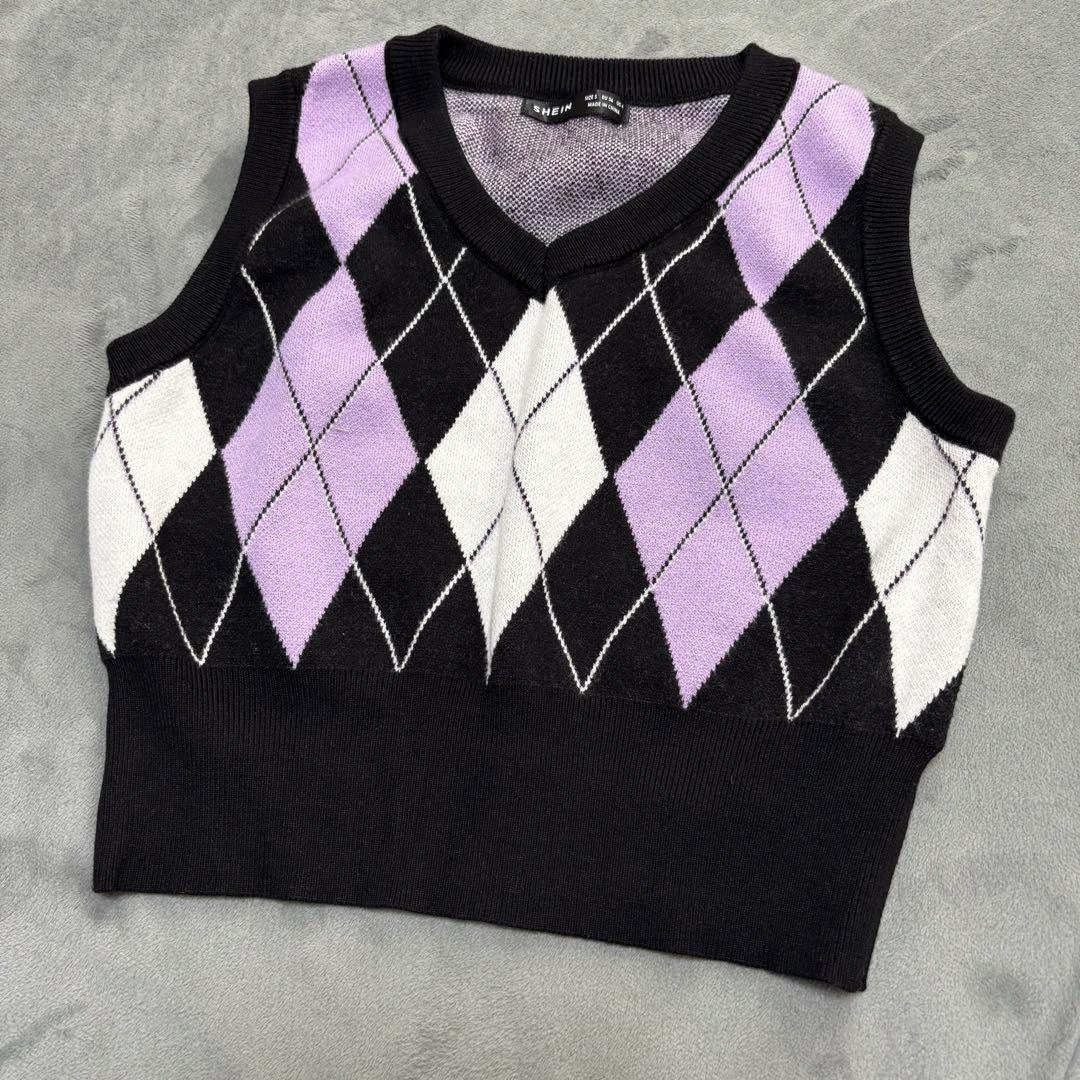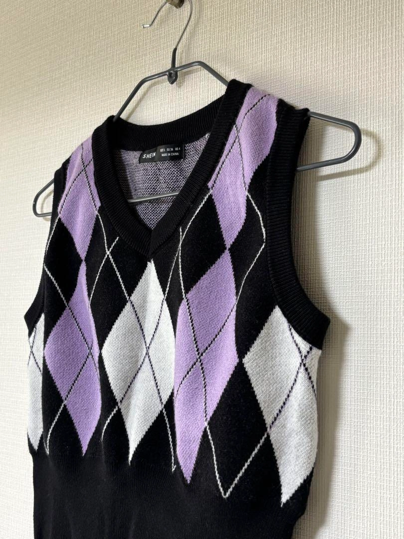 SHEINのアーガイル柄のニットです♪ 着丈短めでとってもキュート♪ このパープルのお色味は、現在SHEINで 品切れとなっておりますので、 見つけたかたはラッキーです! 1、2回着用しましたが、 特にダメージや汚れはございません。 サイズ(実寸/多少の誤差はお許しください) 表記サイズ S 着丈40cm 身幅40cm 肩幅32cm 他にも引っ越し整理で色々出品しております。 複数ご購入でお値引き致します。 宜しければ、ご覧下さい⭐︎ カラー···ブラック系 ご希望の方はお気軽にご連絡ください。
