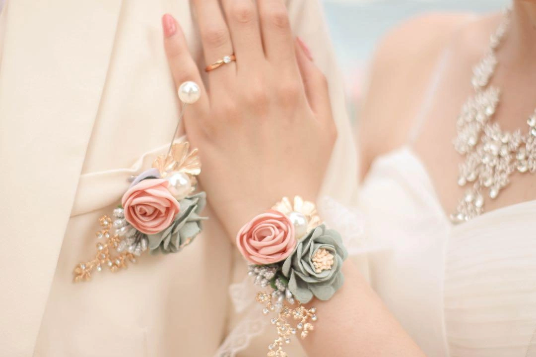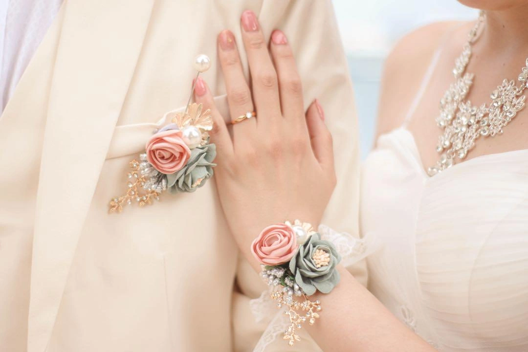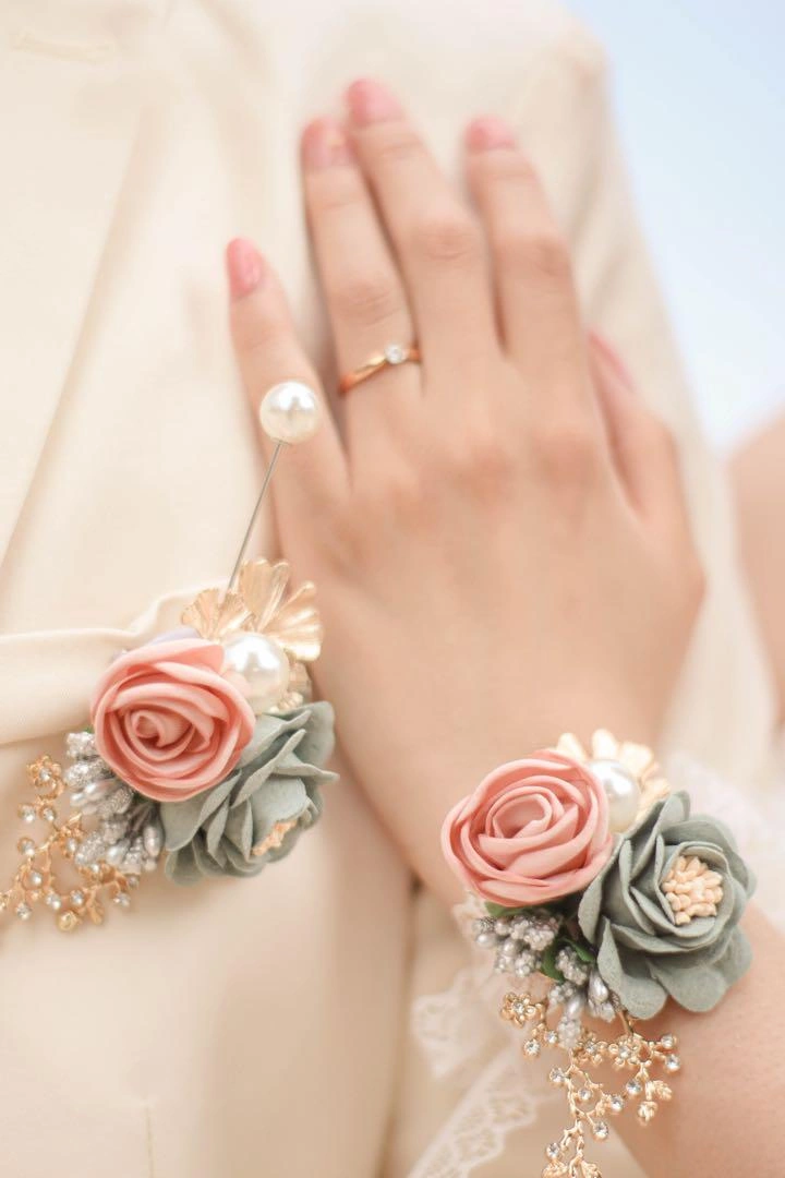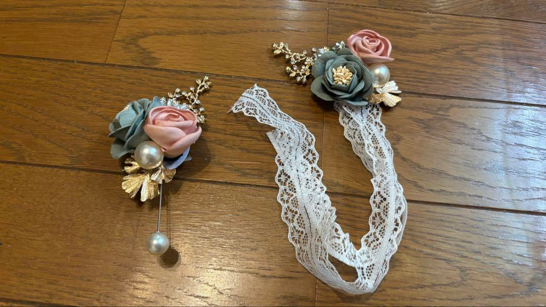 ご覧いただきありがとうございます。 結婚式やパーティーに使えるブートニアとレースブレスレットのセットです。 ピンクとブルーグレーの落ち着いたカラーで、花嫁やゲストの手元を華やかに演出します。 セット内容:ブートニア 2点(ピンク・ブルーグレー)、レースブレスレット 1点 素材:造花、布、レース 状態:1度のみ使用 結婚式やフォーマルイベントにぴったりのアクセサリーセットです。 ご希望の方はお気軽にご連絡ください。