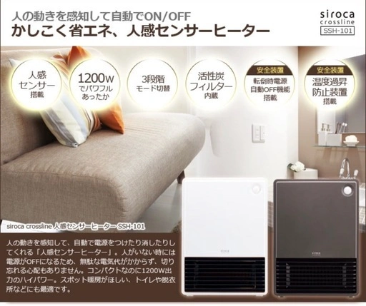 新しい物を購入したので出品します。 人感センサー付、転倒防止機能付き 暖かくて重宝しました。 定価16200円(税込) ご希望の方はお気軽にご連絡ください。