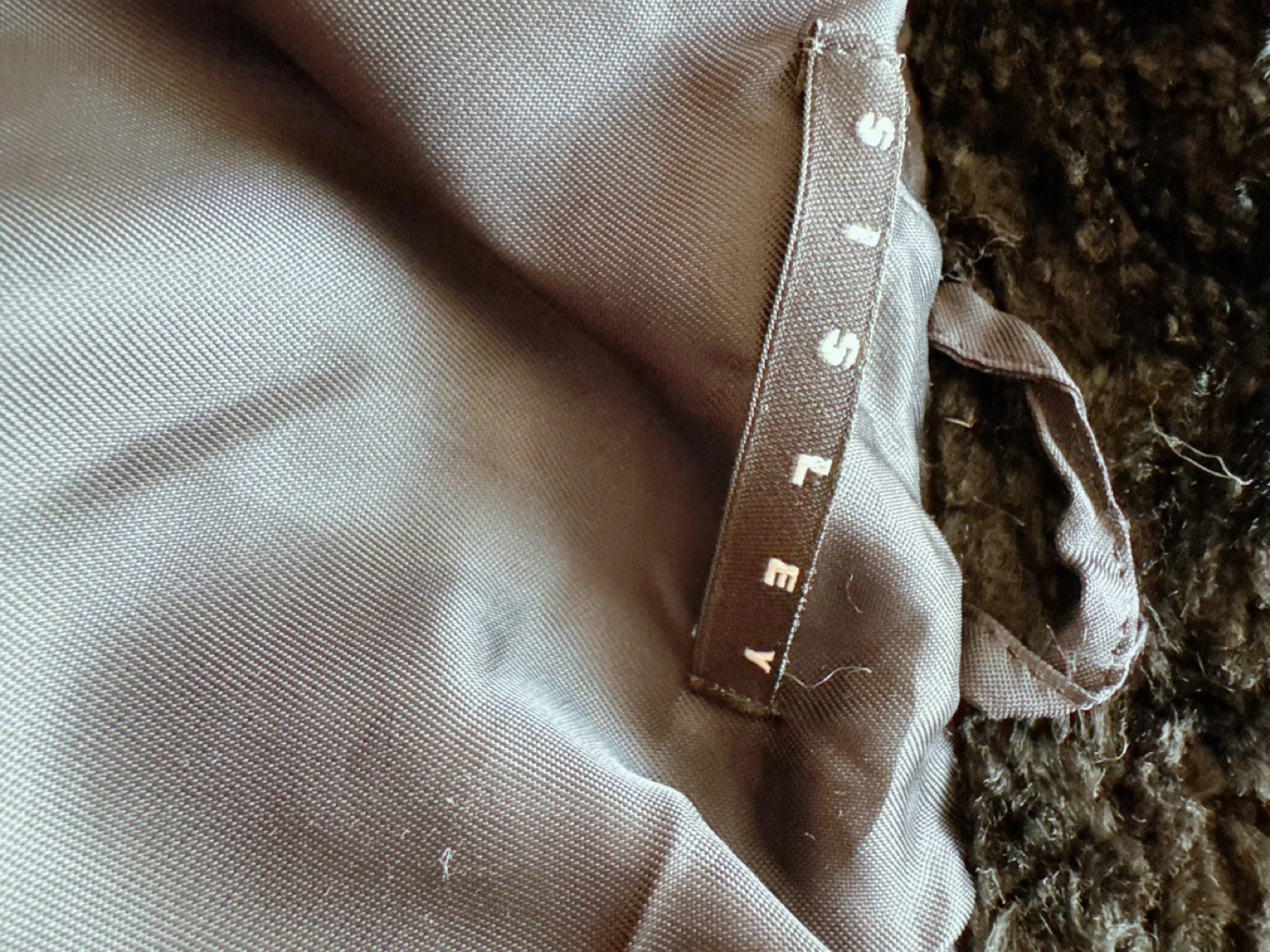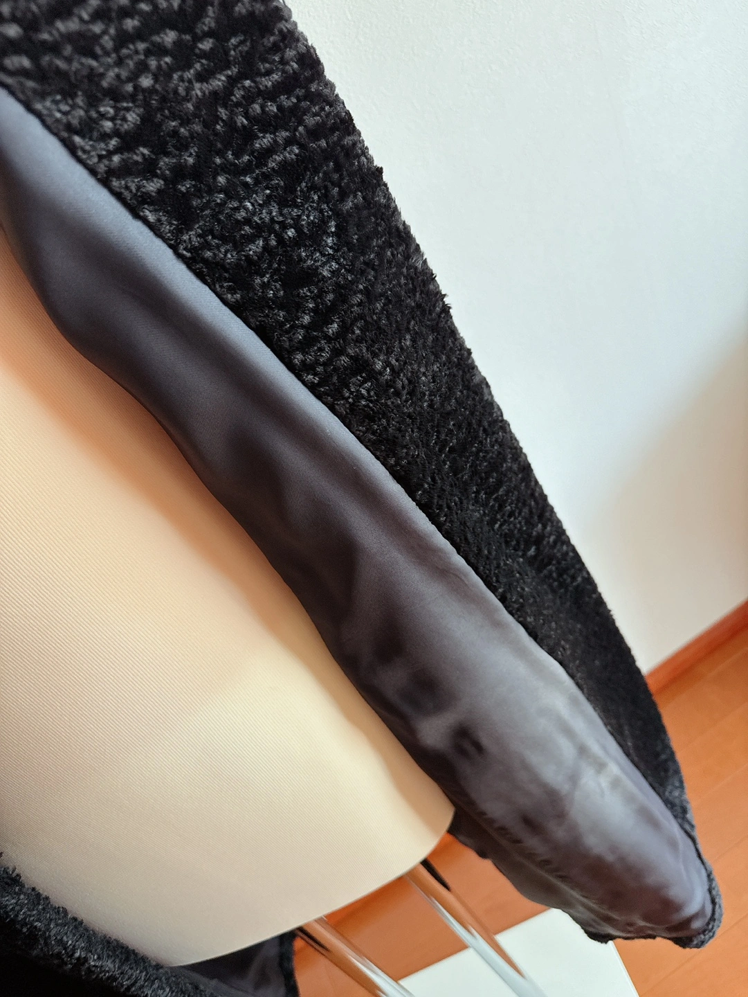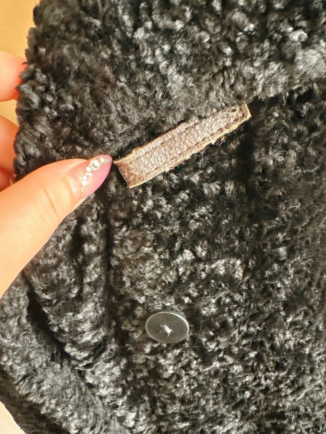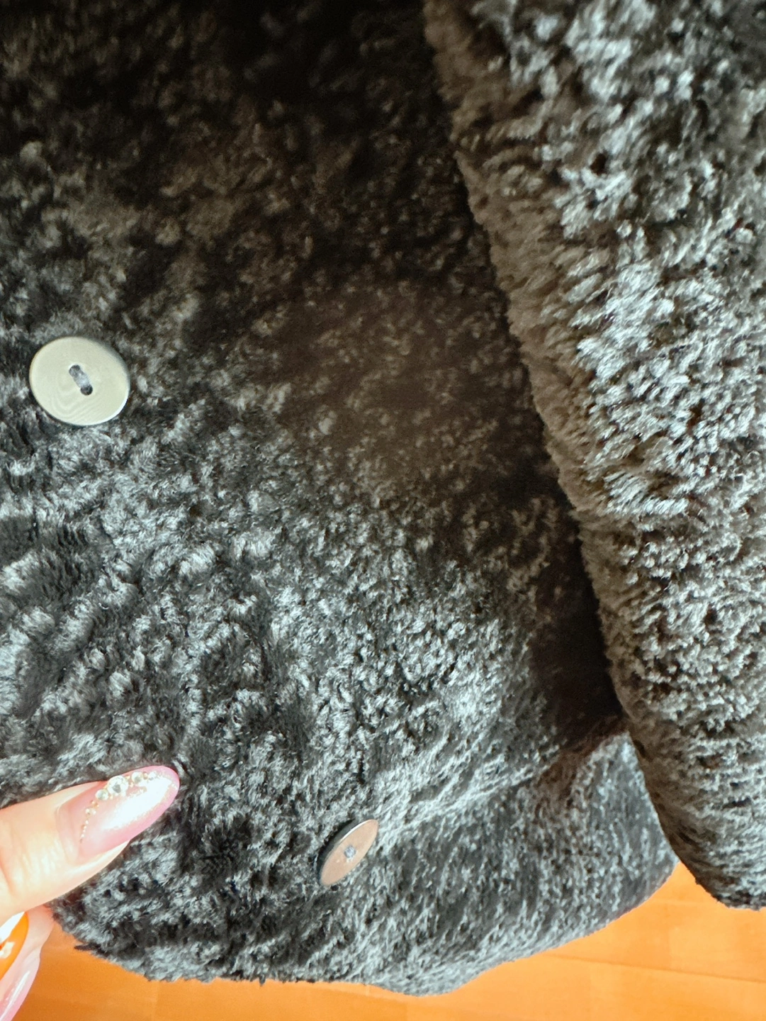 ブラックのロングコートです。 数回短時間の着用で未 使用級の美品ですが、長年保管のため、皮の飾りのところが少し劣化しています(写真をご参照ください)。着用時は目立ちません。 大変高級感があり、カジュアルスタイルからエレガントスタイルにまで合わせていただけます。 着痩せする、美しいシルエットです🌟 着丈 約101㎝ ◼️表記サイズ 42(イタリアサイズの42は、フランスサイズの42より細いです) ※普段、7〜9号の方に綺麗に着ていただけるサイズかと思います。 11号の方ですと、中は薄手のニットなどで、ピッタリ目の着用感かと思います。 ◼️コート平置き実寸 脇下 約46㎝ ウエスト 約44㎝ ヒップ 約55㎝ ◼️マネキンサイズ バスト 約80.5㎝ ウエスト約74㎝ ヒップ 約87㎝ 着物用のマネキンのため、洋装用のマネキンよりウエストは太めのつくりです。