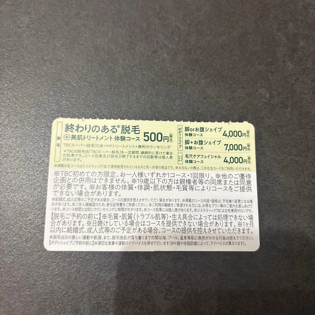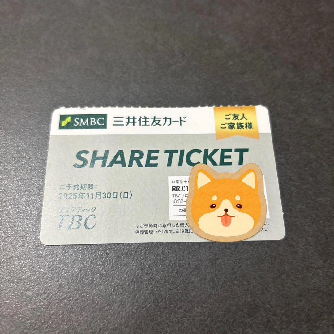 SMBCのSHARE TICKET、有効期限は2025年11月30日。 こちらでエステティックTBCの脱毛が500円で体験、もしくはボディシェイプ、フェイシャルエステが画像の価格で体験できます。 ご希望の方はお気軽にご連絡ください。