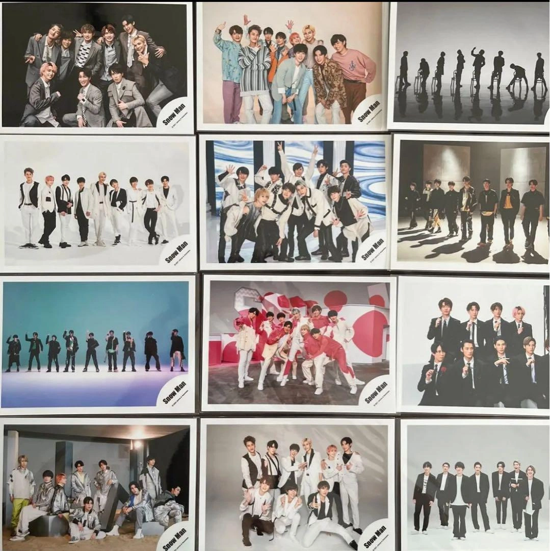 SnowMan公式集合写真12枚です! 一枚ずつスリーブに入ってますのでこのままお届けします(^ ^) スリーブに入れ更にアルバムに入れて暗所保存してキレイな状態だとは思いますが、自宅保管のためご了承ください(^ ^) 水濡れ防止のためにスリーブの上からビニールに入れて二重で対策させて頂きます(^ ^) 【グループ名】SnowMan 【商品】公式写真 - セット内容: 集合写真12枚セット - グループ名: Snow Man ご覧いただきありがとうございます。 グループ名···Snow Man アイテム種別···写真 ご希望の方はお気軽にご連絡ください。
