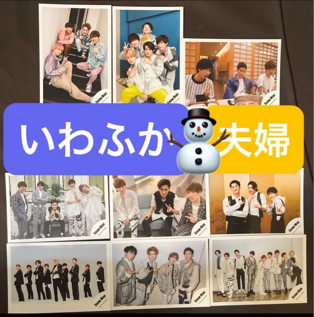SnowManのいわふか夫婦の公式写真です。 岩本照ひーくん、深澤辰哉ふっかさんの写真です。 アルバムに入れて暗所保存しており、状態はきれいだと思いますが、自宅保管のためご了承ください(^ ^) 【グループ名】SnowMan スノーマン 【商品】公式写真 よろしくお願いいたします(^ ^) ご覧いただきありがと うございます。