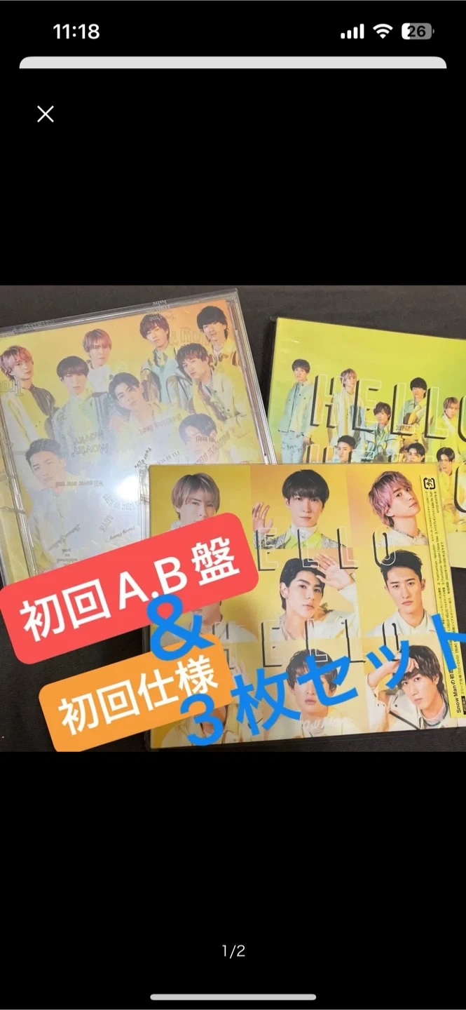 Snow Manの4thシングル「HELLO HELLO」  3形態セット ◆初回盤A ◆初回盤B ◆初回スリーブ仕様 初回盤A (CD+DVD) Disc.1 01.HELLO HELLO(4:26) 02.縁 -YUAN-(4:56) Disc.2 01.HELLO HELLO (Music Video)(4:23) 02.縁 -YUAN- (Music Video)(4:56) 03.Behind The Scenes(-) 初回盤B (CD+DVD) Disc.1 01.HELLO HELLO(4:26) 02. YumYumYum ~SpicyGirl~ Disc.2 01.HELLO HELLOマルチアングル映像 02. YumYumYum ~SpicyGirl~ダンプラ 03.クイズプレゼンバトル 外側のビニール袋がないものもあります。中古品となりますが大きな傷等はないと思います(^ ^)初回特典のゲームとマルチアングル、メイキングが最高です! 「HELLO HELLO」は、ラウール主演映画『ハニーレモンソーダ』の主題歌となっており、Snow Manデビュー後初のポップなラブソング。 そして、<初回A盤>には、佐久間大介くんが声優としてW主演を務めるアニメ映画『白蛇:縁起』日本語吹替版主題歌の「縁 -YUAN-」を収録。映画のストーリー・世界観をイメージした、切なくもまっすぐな恋心を歌った楽曲となっており、時折聴こえる中国語の歌詞にも是非注目。<初回B盤>にダンスナンバー「YumYumYum ~SpicyGirl~」収録。ラブソングからダンスナンバーまで、今作も幅広いSnow Manの魅力を楽しめる作品。