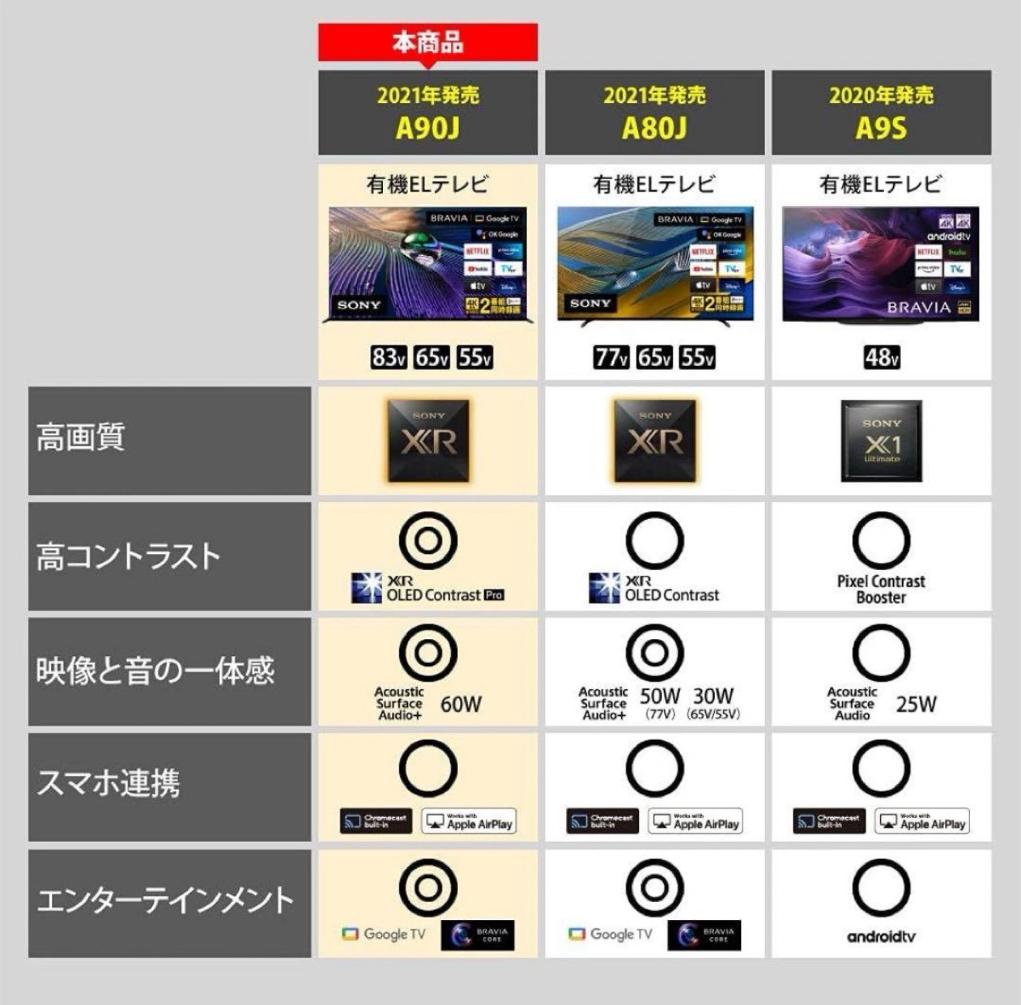 ■お受け渡し方法について ・直接お越しいただいての受け渡し可能です。(引き取り場所は池尻大橋駅辺りです。) ・場所によりますが3,000円〜お届けから設置、初期設定まで行います! ■2022年製 SONY65インチ有機ELテレビです。販売価格45万円〜のフラッグシップモデルです。 全体的に綺麗な状態です。 ※焼き付きがある状態で有機ELテレビを出品されている方が多いのでご注意してください。YouTubeにある「有機ELテレビ焼き付き簡易確認動画」で確認しましたが焼き付きはありませんでした。 ■付属品について ・本体、電源ケーブル、純正リモコン、純正スタンド、取扱説明書 ほかのフリマサイトにも出品していますので他で決まった場合コチラは削除します。 お値下げ交渉中、お問合せ等がありましても先に購入された方を優先とさせていただきます。予めご了承下さい。 ソニー BRAVIA XRJ-65A90J ブランド:ソニー BRAVIA 有機EL/液晶:有機EL 本体サイズ(幅×高さ×奥行)mm:1444x833x41mm スタンド含む本体サイズ(幅×高さ×奥行)mm:1502x834x317mm(標準スタイル) 本体重量(kg):22.5kg スタンド含む重量(kg):24.6kg 画面サイズ:65V型 入力端子:HDMI×4、ビデオ×1、センタースピーカー×1 出力端子:光デジタル音声(AAC/PCM/AC3/DTS)、ヘッドホン端子 LAN:有線・無線 BS 8Kチューナー:0 BS 4K・110度CS 4Kチューナー:2 地上デジタルチューナー:3 BS・CSデジタルチューナー:3 消費電力:521W 0.5W(待機時) 年間消費電力量:220kWh/年