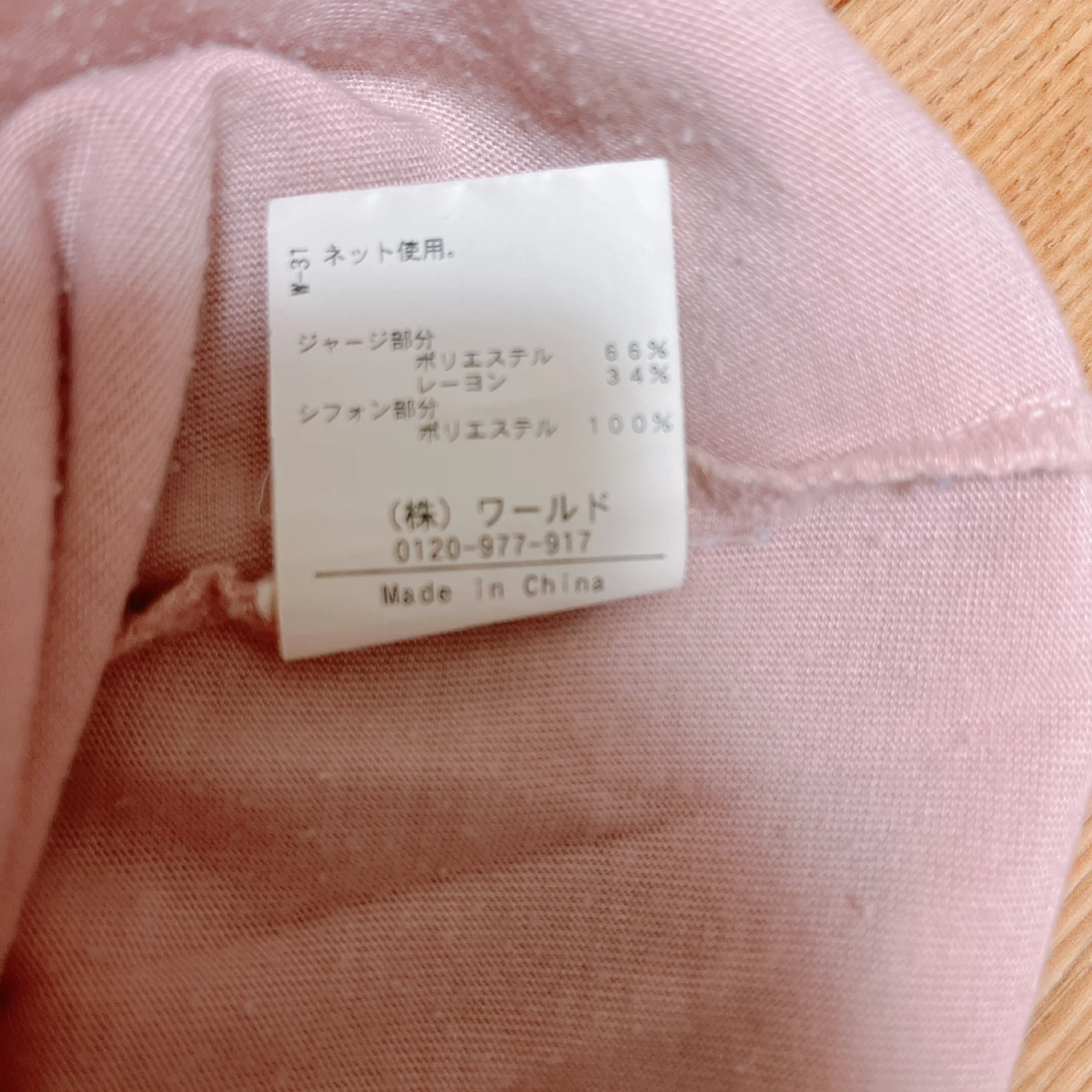 SOUP スープ カットソー ピンク系 Vネック 7分袖 シフォン リボン ワールド 春 オフィスカジュアル スーツ