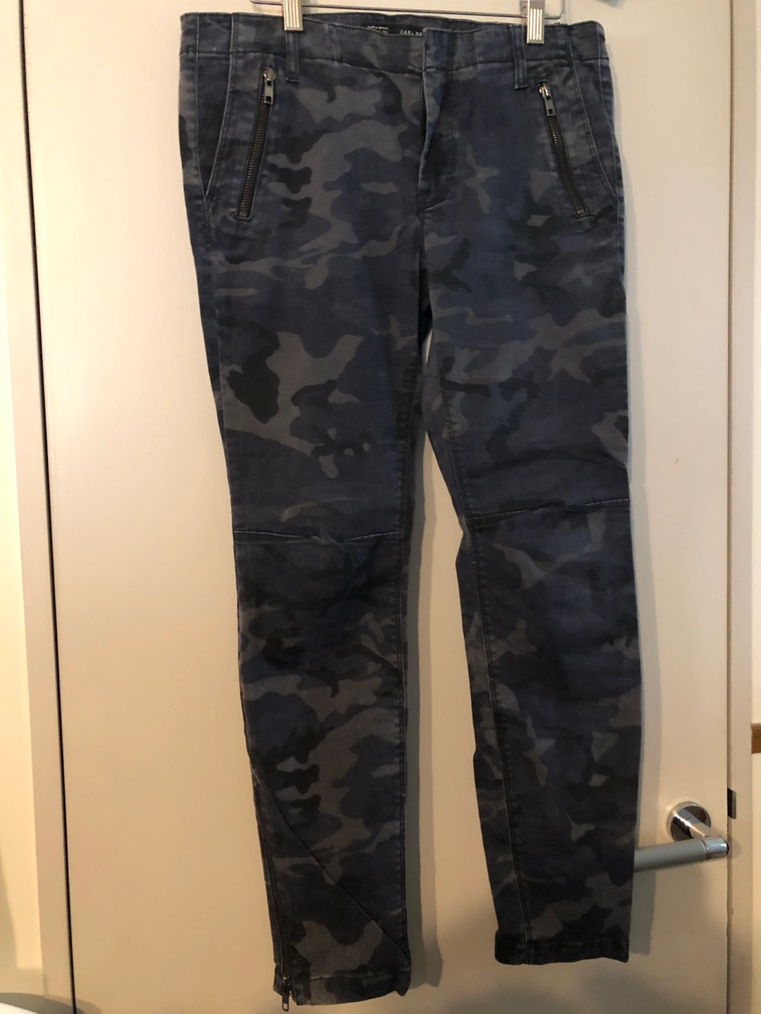 数年前に購入。痩せて体型に合わなくなってしまいました為、手放します。 形がとても綺麗です。ストレッチが効いていて履き心地も良いです。 利用脇にポケットあり。ジッパーポケットは飾りです。後ろのパッチポケットも飾り、ポケットとしては機能しておりません。 膝部分が立体的な縫製になっております。 裾のジッパーは開閉できます。 オールシーズン着用いただけるパンツです。 商品状態:大事に愛用しておりました。ものがしつかりしているのでまだまだ着用になんの支障もないと感じます。室内保管です。 (保管場所に喫煙者やペットはおりません。) ブランド:ZARA 色 : ブルー系camo柄 中古品であるということをご了承の上、ご購入ください。 ご不明点等ございましたらご連絡ください。 港区に隣接する地域であれば お渡し場所として検討できる場合がありますので、ご希望あればご相談ください。