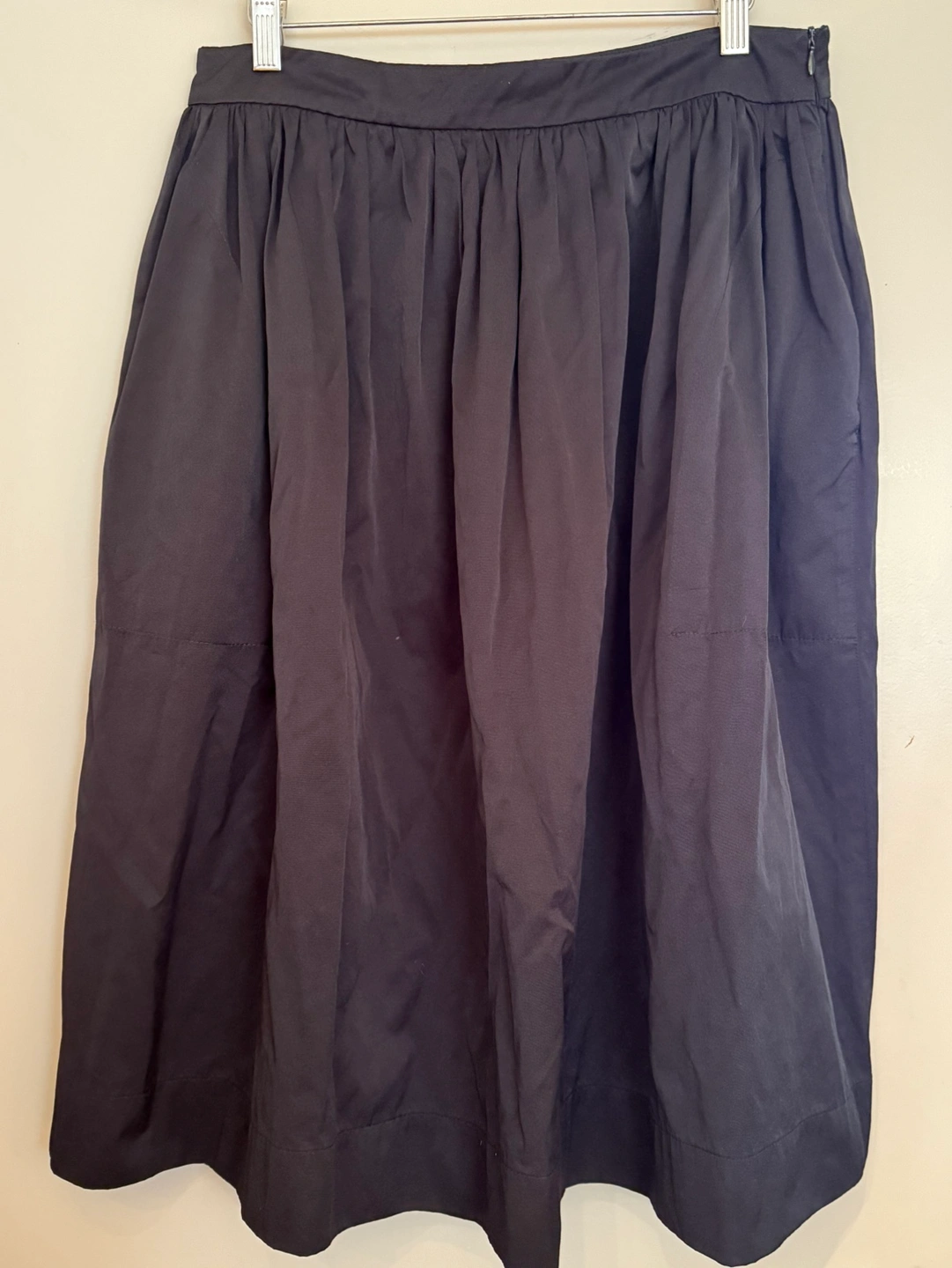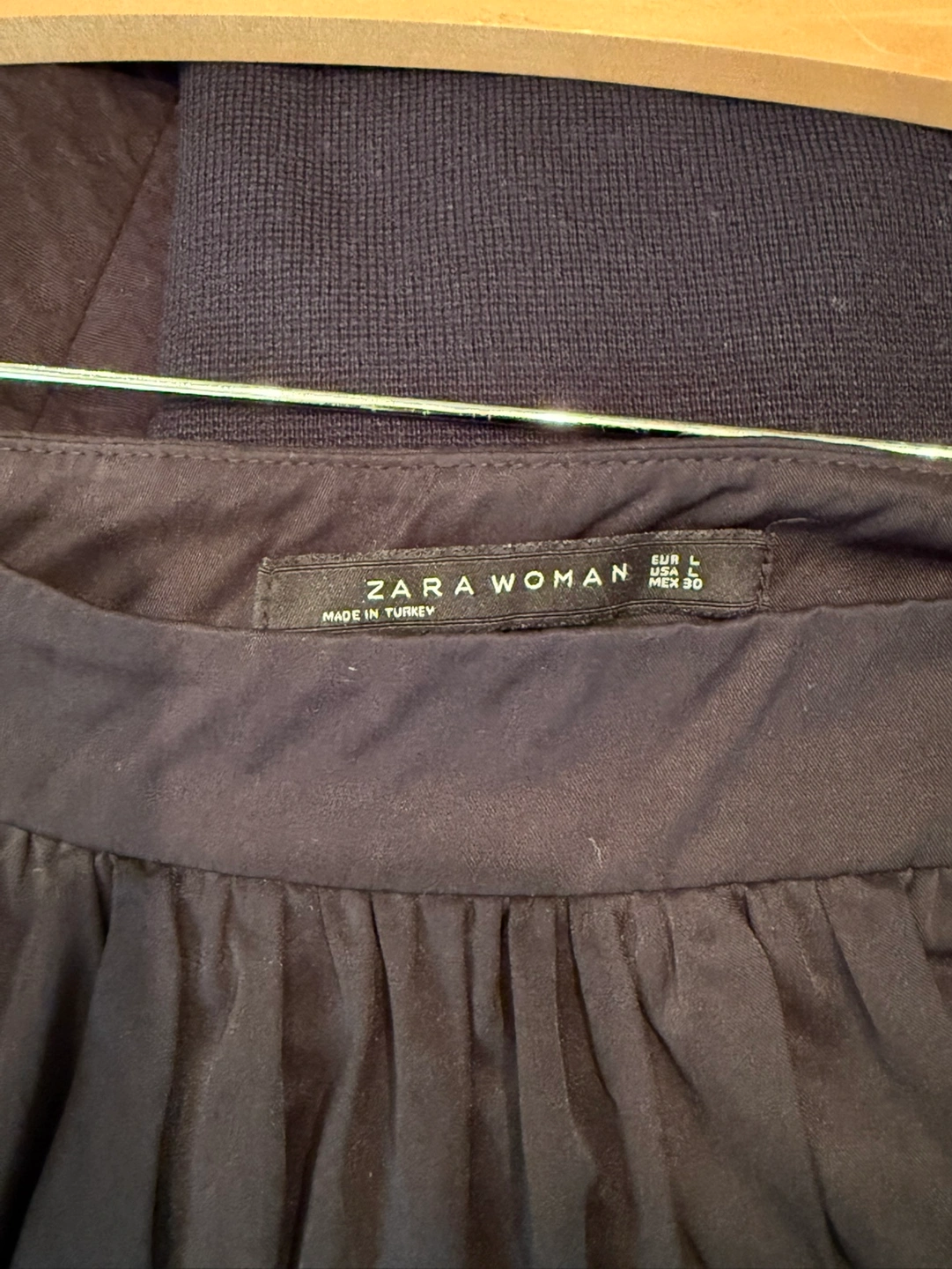 ZARAの光沢抑えめなサテン生地のウエストギャザースカートです。 サイズはL お色は黒 左脇ファスナーで、両側にポケットがあります。 履いたシルエットは綺麗で、長い季節お使いいただけると思います。しっかり目の生地で、裏地はありません。 個人保管のusedであります事ご理解いただける方にお譲りいたします。 保管場所に喫煙者やペットはおりません。 お渡し場所について港区に隣接する地域であればご相談お受けできる可能性がありますのでお気軽にご相談ください。