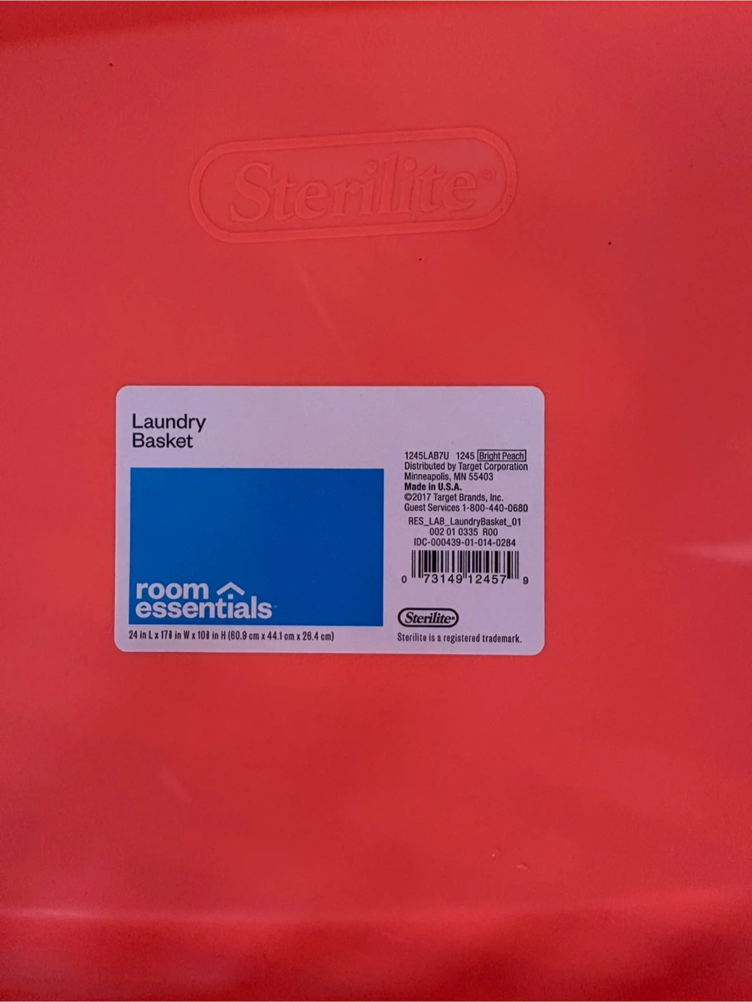 Steriliteの洗濯かごです。 ・カラー:オレンジ ・サイズ:約60.9cm x 44.1cm x 26.4cm (24インチ x 17.3インチ x 10.4インチ) ・全体的にきれい 中古品であることご了承ください