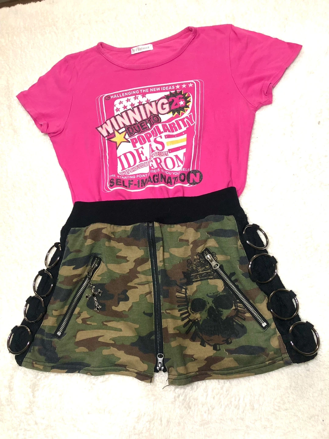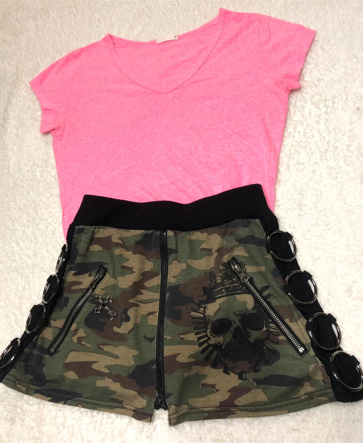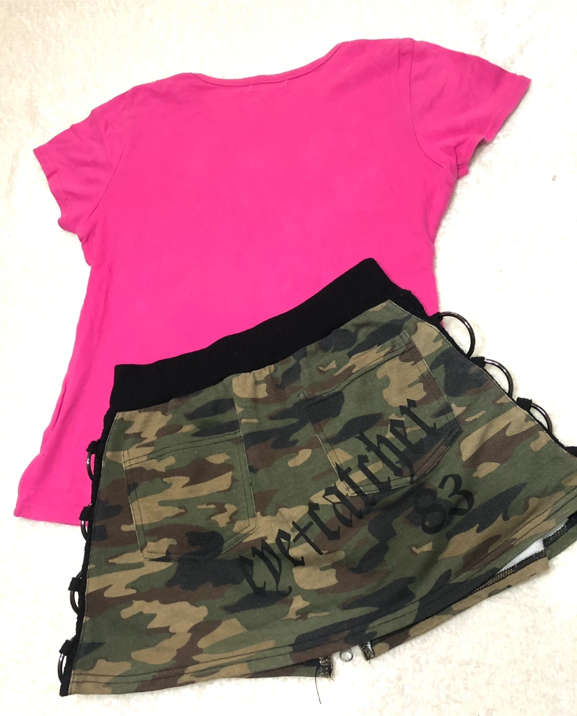 💕Tシャツ2枚と迷彩柄スカートの3点セット。サイズ:M