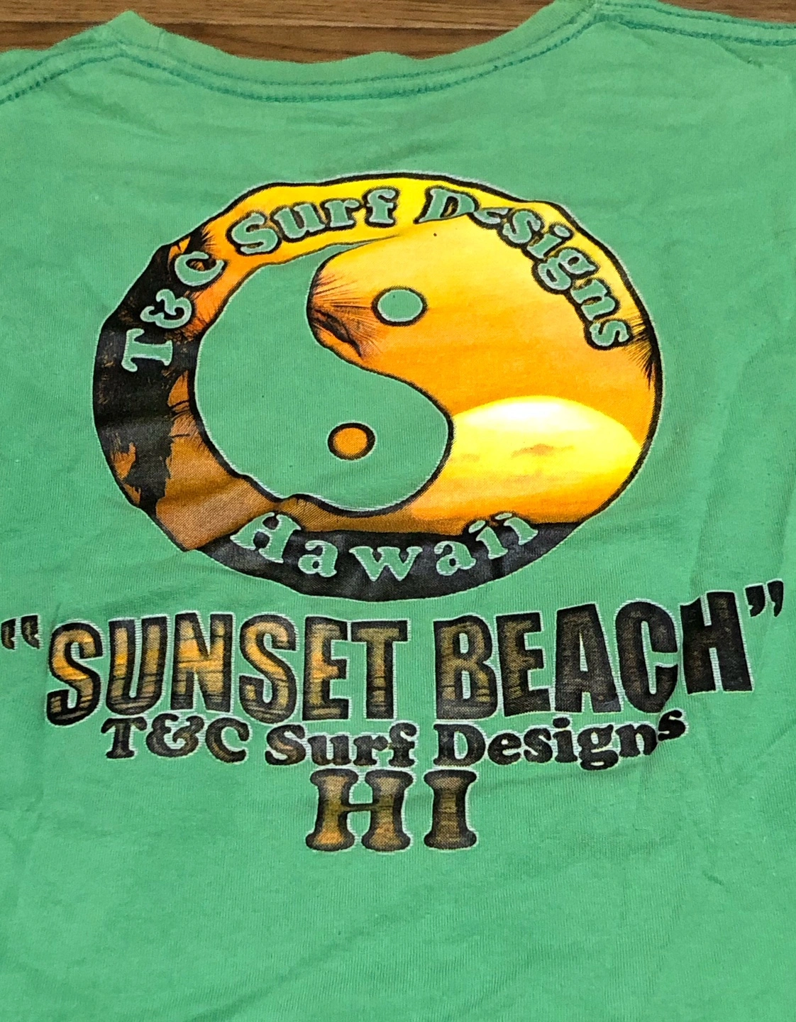 ・ブランド:T&C Surf Designs ・サイズ:S 肩幅:45cm 身幅:49cm       身丈:61cm     素人採寸の為、誤差はご理解下さい。 ・カラー:グリーン ・SUNSET BEACH プリント 目立つ汚れなどございません。(洗濯済み) どうぞ宜しくお願い致します。