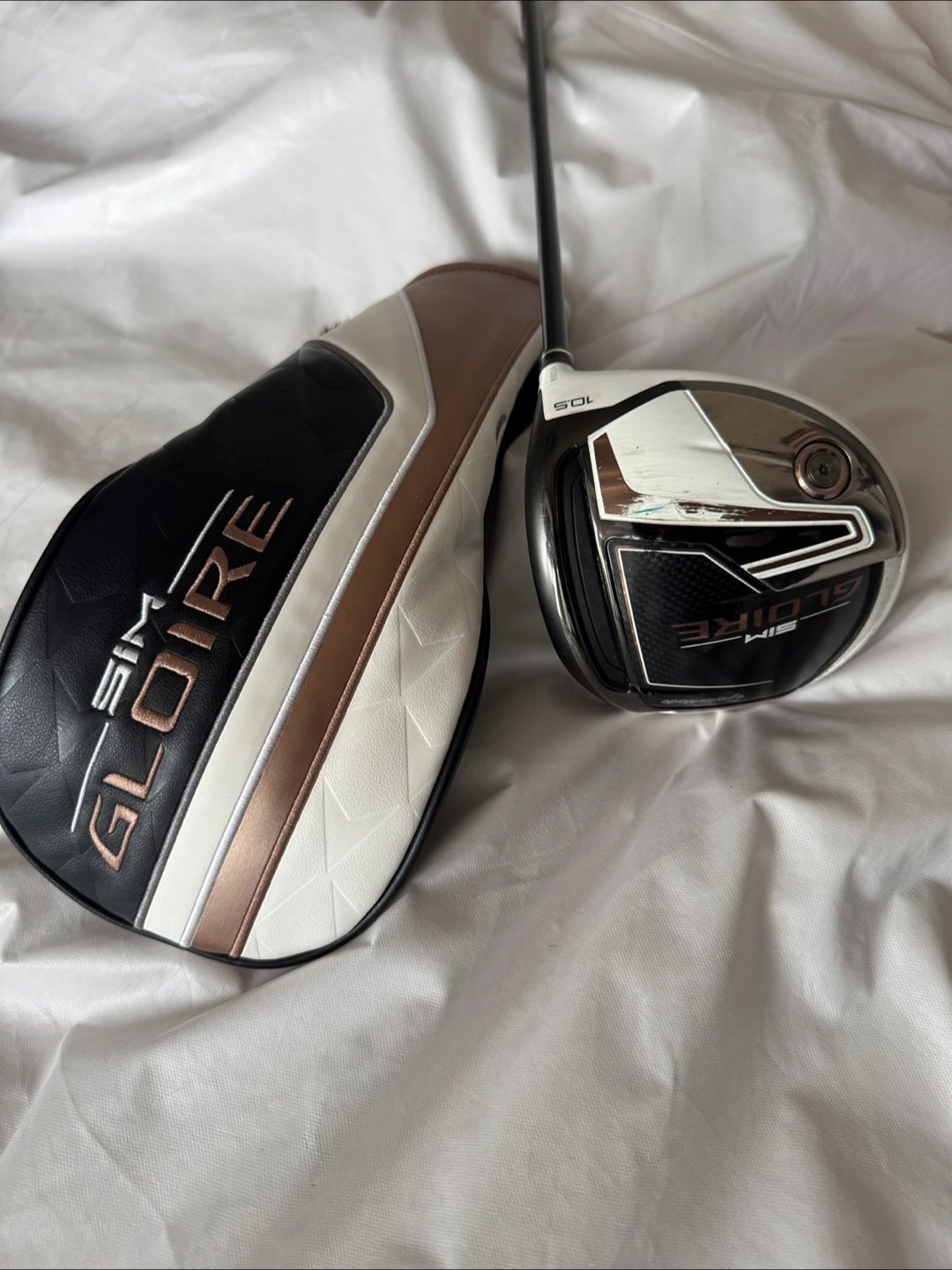 【TaylorMade SIM GLOIRE ドライバー(10.5°/Rシャフト)】 テーラーメイドの高反発モデル「SIM GLOIRE」シリーズ。 軽量カーボンシャフト・Air Speeder(Fujikura製)× LAMKINグリップで、 力に頼らずスムーズに振り抜ける設計が特徴です。 状態:ヘッドに軽い擦れあり(写真参照)、使用には問題ありません。 ロフト角:10.5°(調整可能) シャフト:Fujikura Air Speeder(Flex R) グリップ:LAMKIN Calibrate(交換後きれい) 付属品:純正ヘッドカバー付き 実際に見ていただいてから購入いただいても構いません。 現金・PayPay対応。下北沢・恵比寿・広尾などで受け渡し可能です。 ・テーラーメイド ・SIM GLOIRE ・ドライバー ・AIR SPEEDER ・FLEX-R ・ヘッドカバー付き