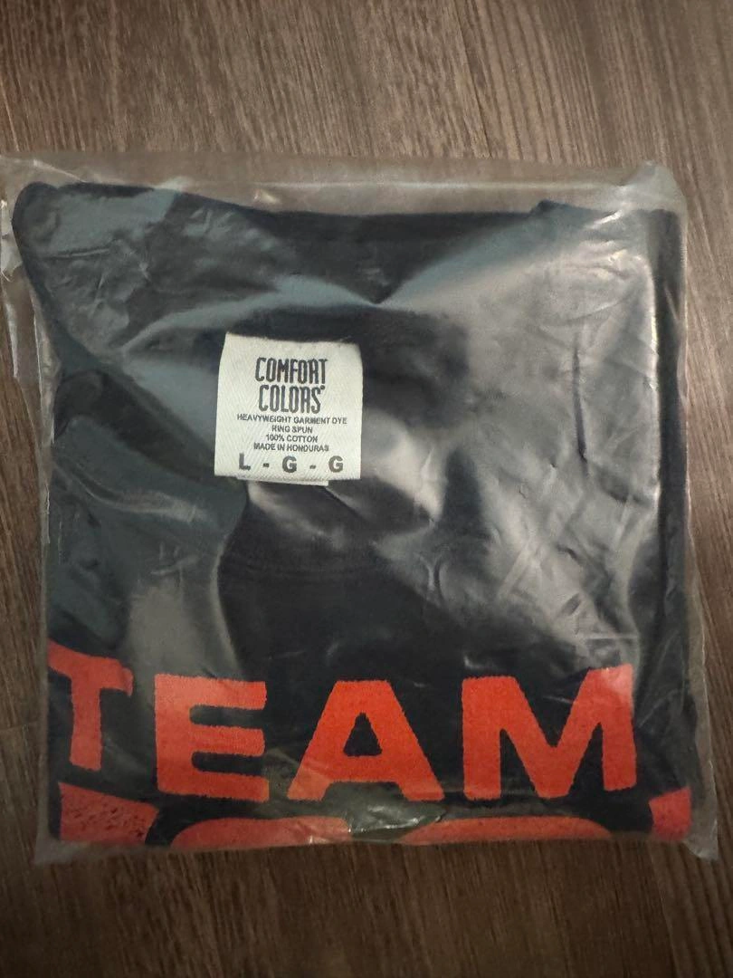 マイク・タイソンの顔と「TEAM TYSON」の文字が特徴的なTシャツです。スポーツファンやボクシングファンにおすすめです。 COMFORT COLORS製のコットン素材で、着心地が良いと思います。 Lサイズで、ゆったりとしたフィット感です。 - デザイン: TEAM TYSONのグラフィック - 色: 黒 - ブランド: COMFORT COLORS - サイズ: L - 素材: コットン - 印刷: フロントにマイク・タイソンの顔のプリント - サイン: マイク・タイソンのサイン風のデザイン ご希望の方はお気軽にご連絡ください。