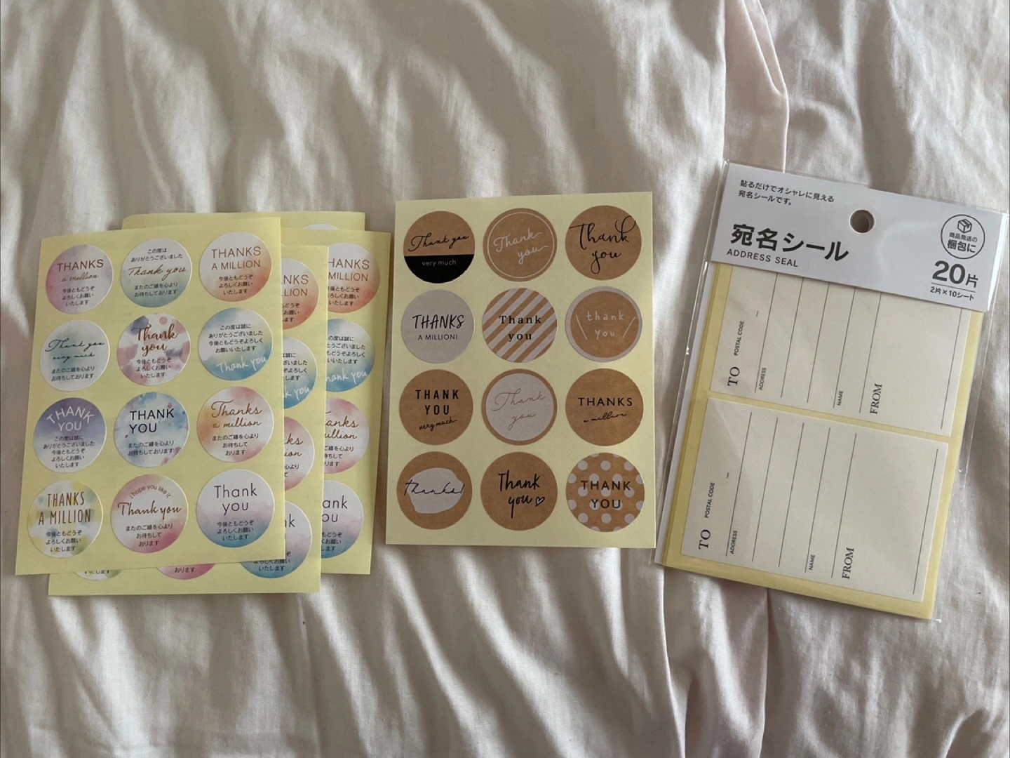 百均で購入したシールですが、使い切れそうにないのでお裾分けします! SHEINで購入したThank youシールもお付けします。(2枚目) 宛名シールは6枚あります。 フリマアプリでのお取引が多い方などにいかがでしょうか(*^^*) 月火木金土9~14時 / 水9~18時 /日× 船堀駅、西葛西駅、行船公園など