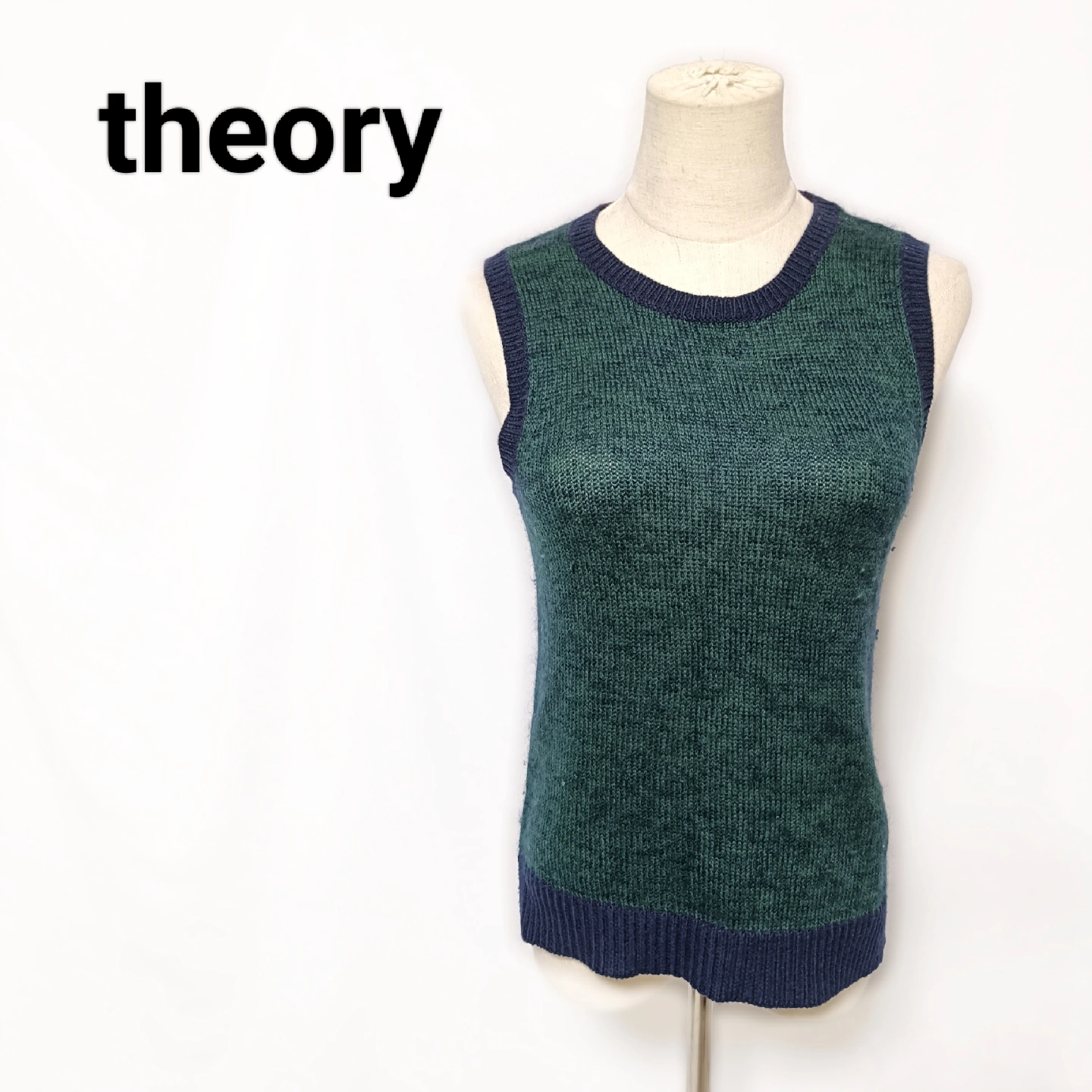Theory セオリー ノースリーブニットベスト S 緑系 カシミヤ モヘア混