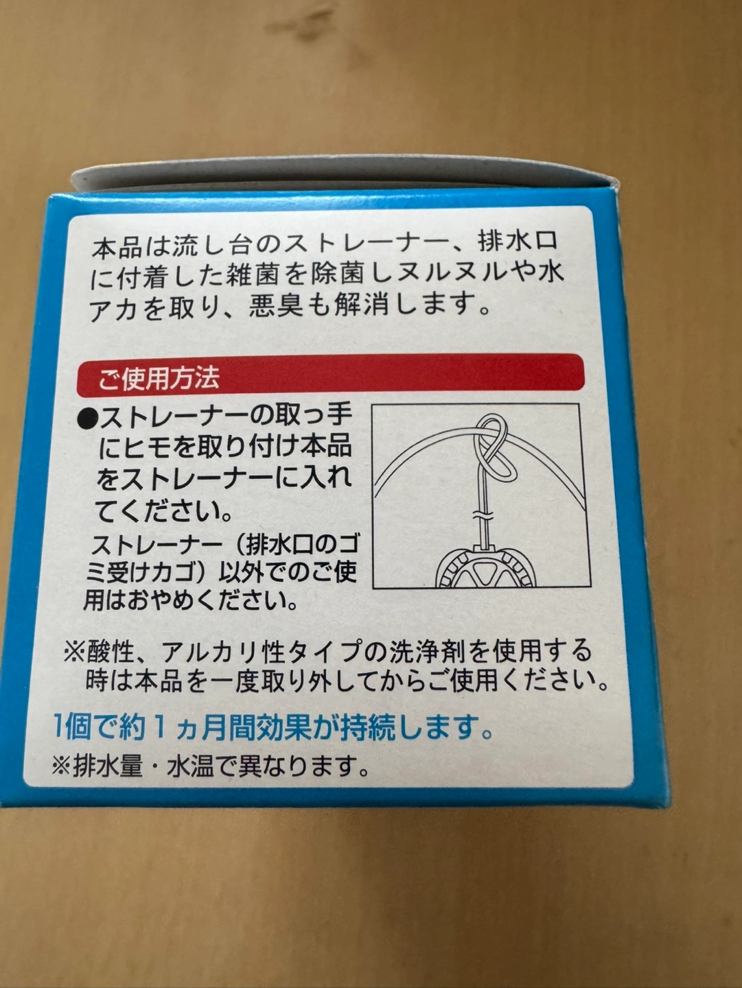 排水口のヌルヌルすっきり! ぬめりとれ〜る カンタン・清潔 除菌 消臭 大粒 30g×5個入 カバー付き ストレーナーに吊るすだけ すとや排水口のヌメリを取り、流れをスムーズにします 除菌効果で清潔に 混ぜるな危険 酸性、アルカリ性の洗浄剤や漂白剤などを直接かけると発熱や有毒な塩素ガスが出て危険 ストレーナーの取っ手に取り付けるだけでぬめり取りの効き目は約1ヶ月! ファミリーマート登戸郵便局西店まで来てくださる方、よろしくお願いいたします