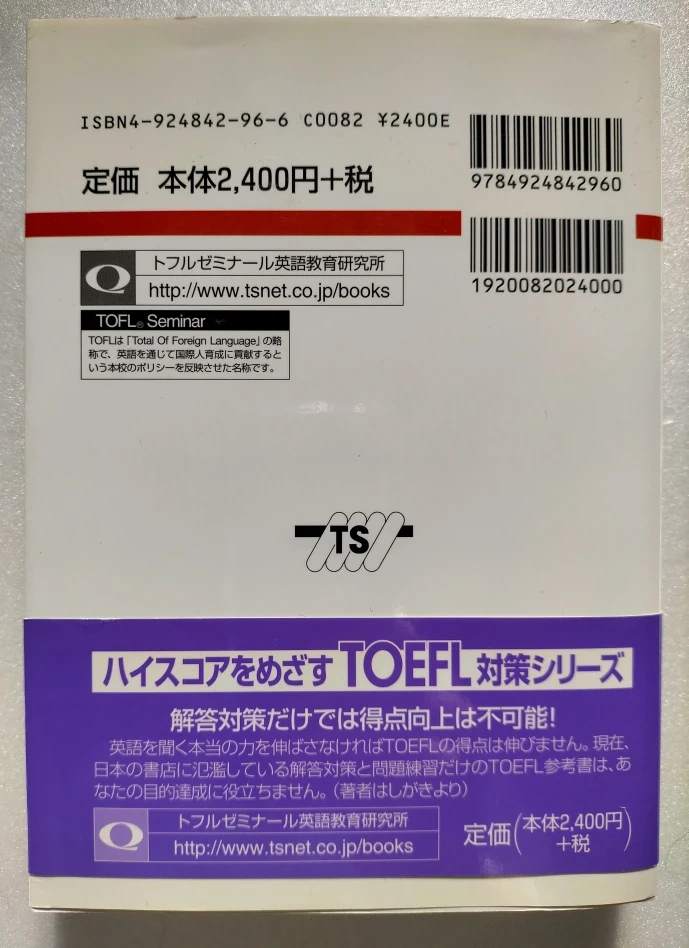 TOEFL TEST対策 徹底リスニング CD3枚付 定価 2400円 自宅保管のため細かい傷汚れがございます。写真でご判断ください。気になさる方はご遠慮ください。