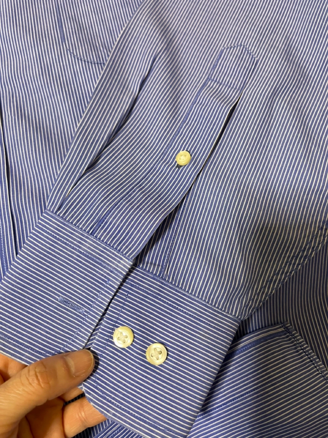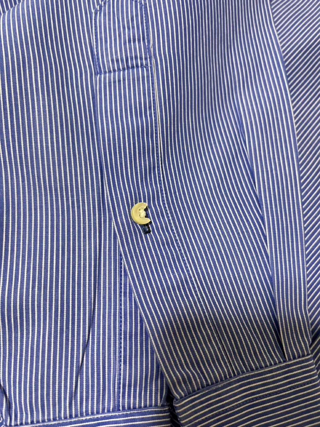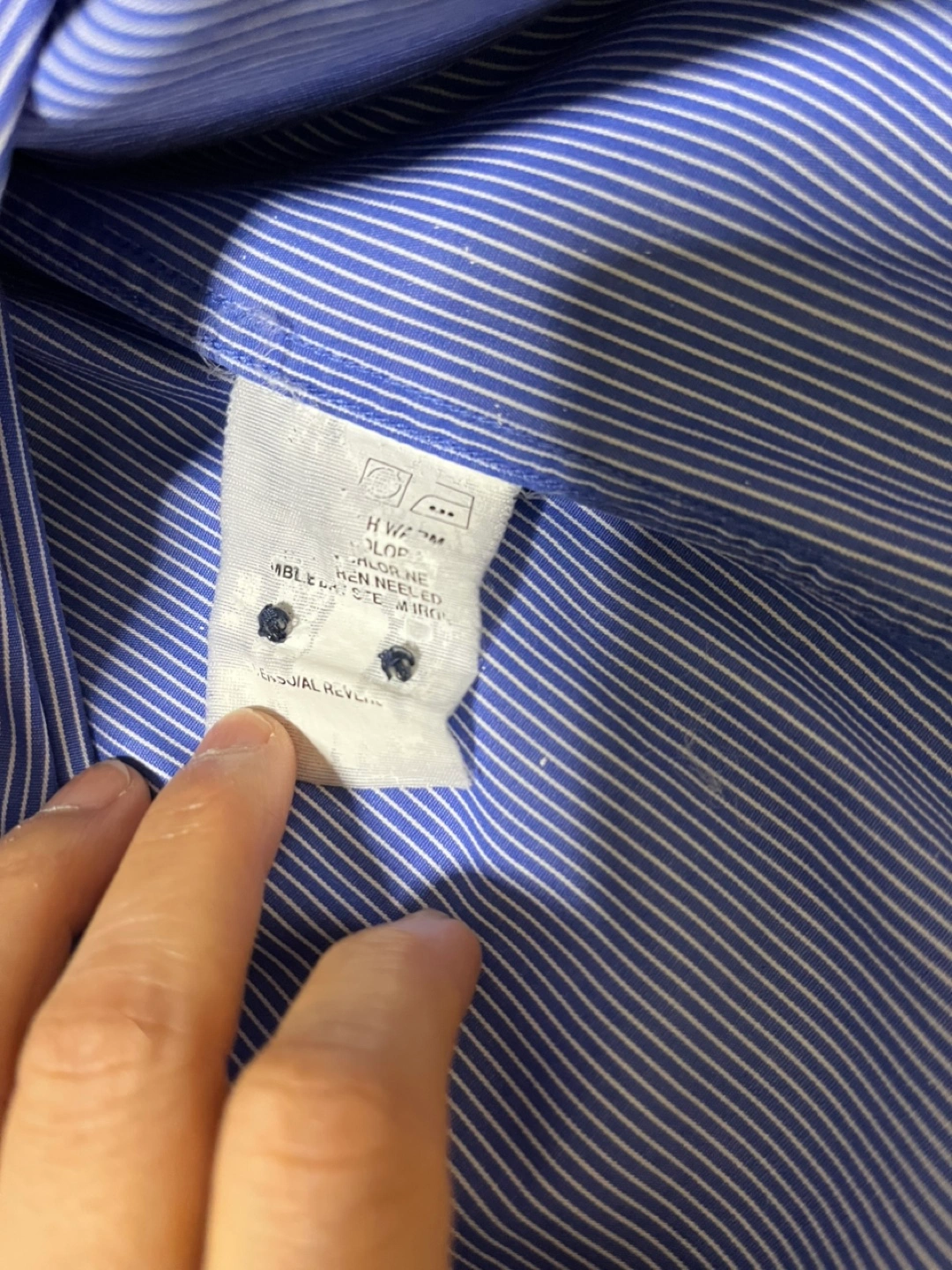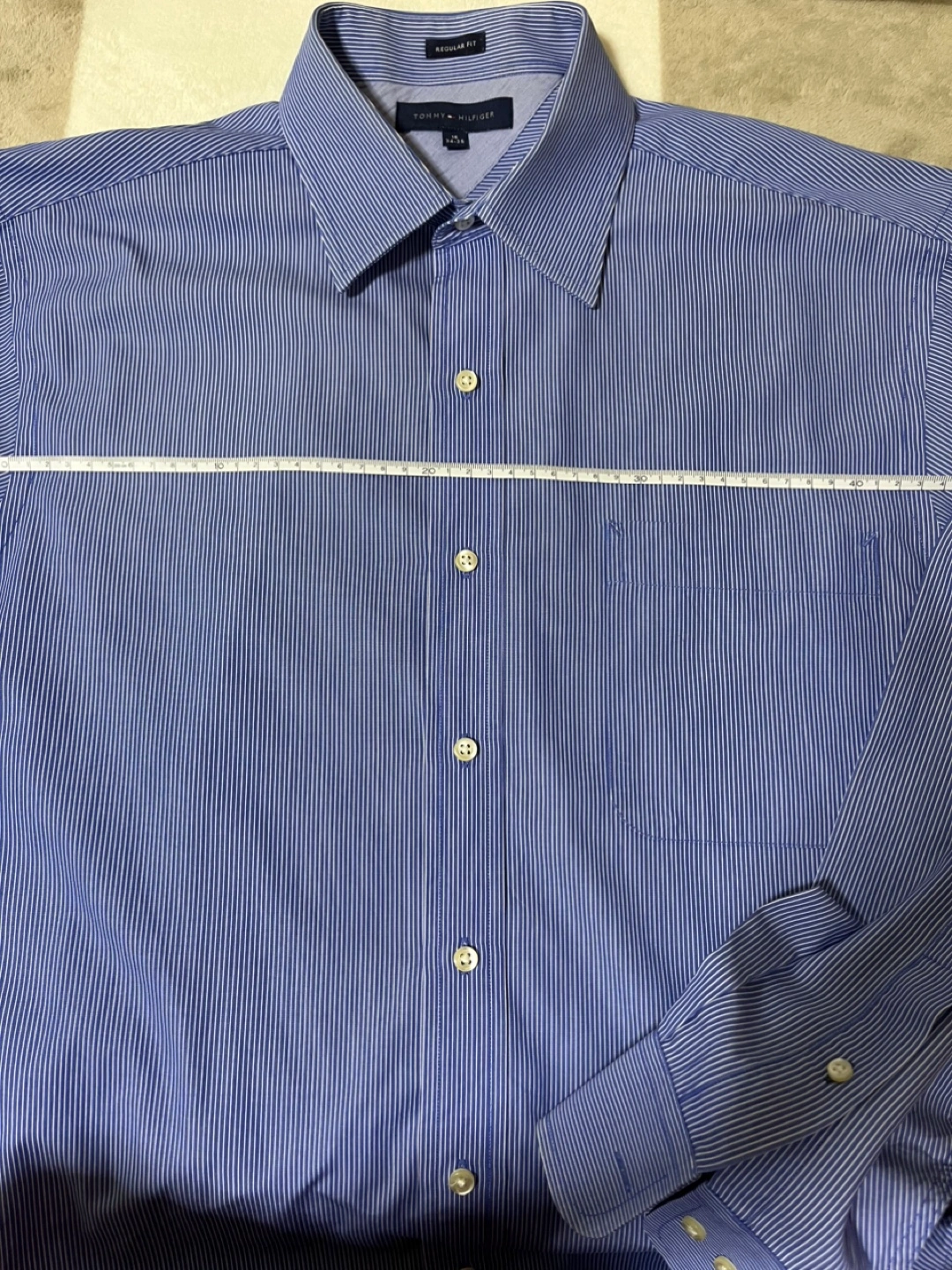 Tommy Hifigerのストライプシャツです。 ビジネスシーンはもちろんカジュアルにも着ていただけます。 90年代のヴィンテージシャツです。ボタンが半分壊れていますが、交換可能です。 【ブランド】 Tommy Hilfiger シャツの肩幅 : 50cm. 【素材】綿 【カラー】ブルー よろしくお願いいたします。🙇♀️ 武蔵小山駅、学芸大学駅、または目黒駅で集合してください。🙇♀️