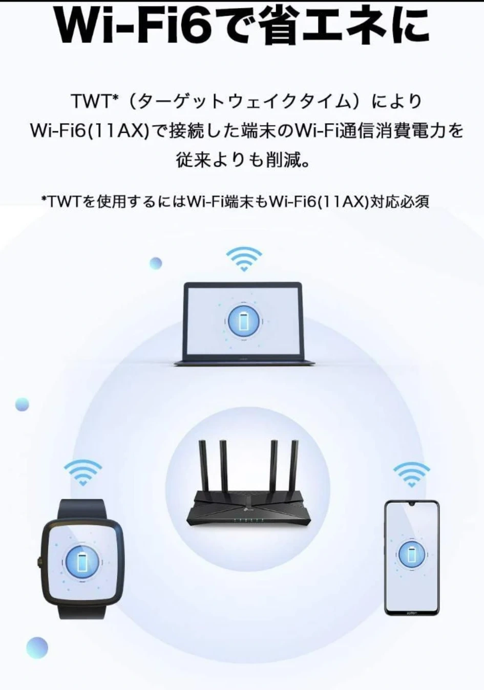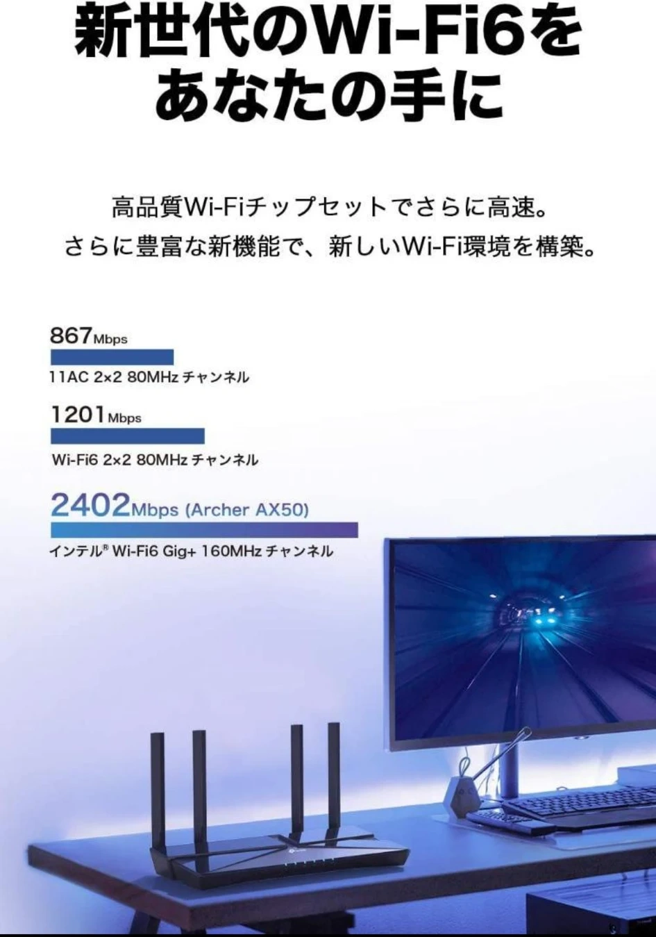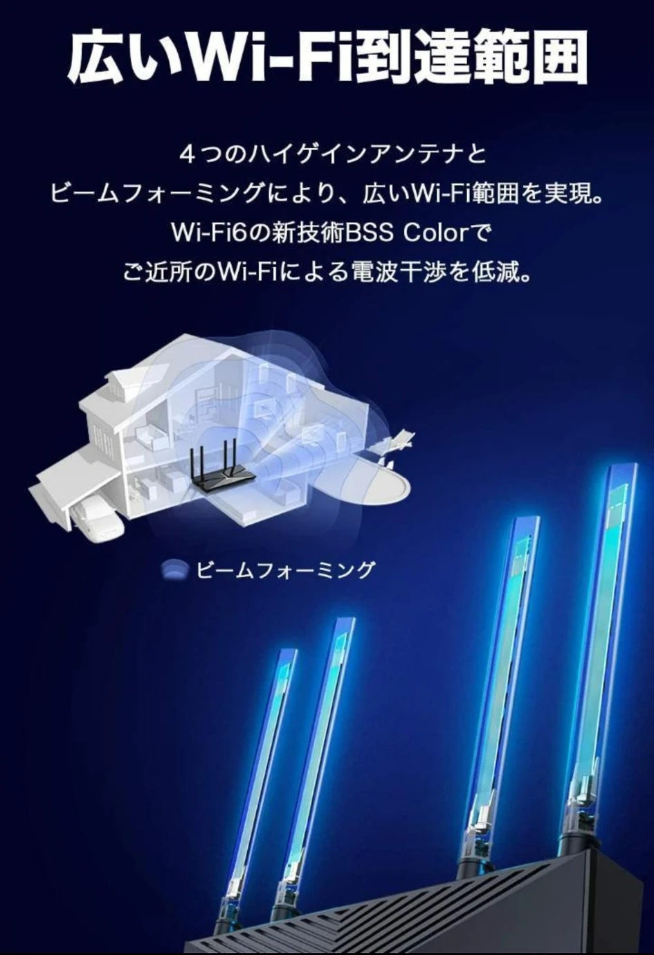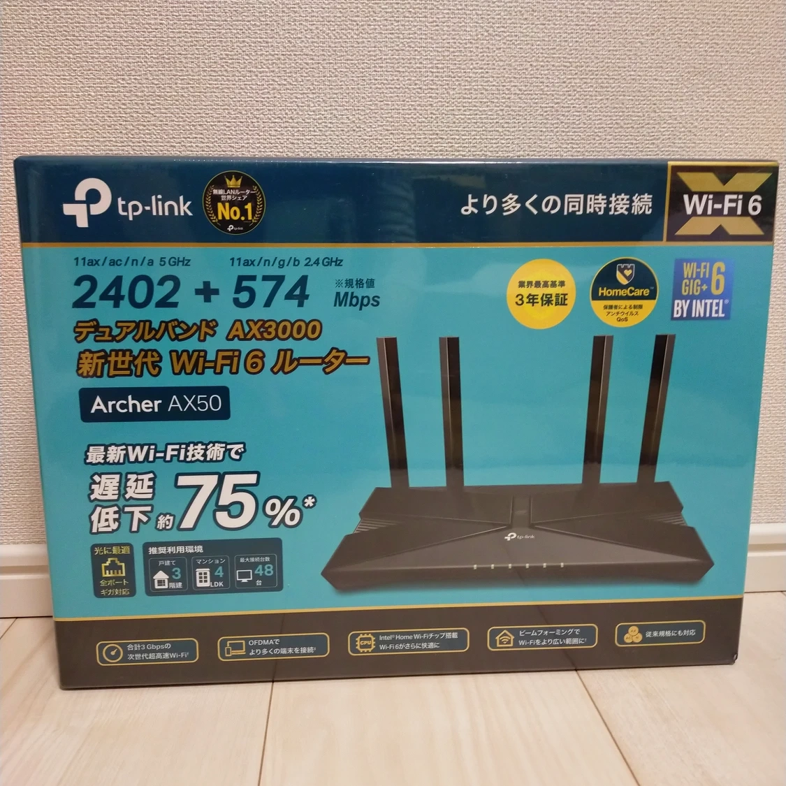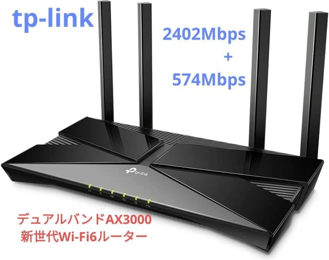 新品未開封未使用です ●TP-Link WiFi 無線LAN ルーター Wi-Fi6 11AX AX3000 2402 + 574MbpsArcher AX50/A 【 iPhone 11 / iPhone 11 Pro / iPhone 11 Pro Max 対応】 ブランド:TP-Link シリーズ:TP-Link Archer 周波数帯クラス:デュアルバンド ワイヤレスタイプ:802.11ax 対応デバイス:Microsoft Windows 98SE/NT/2000/XP/Vista™/7/8/8.1/10 MAC OS, NetWare, UNIX, Linux [特徴]世界シェア9年連続No.1*のTP-Link製だから安心。新時代のWi-Fi6を高コスパで実現。(*IDC調べ) [高い安定性] OFDMAにより、Wi-Fi5(11AC)よりも4倍のキャパシティを実現。IoTが増えても、より多くの同時通信を可能に。 [ウイルス&マルウェア対策] トレンドマイクロ協力のセキュリティシステムHomeCare(3カ月無料)を搭載。ネットのウイルスやマルウェアからあなたの端末を守ります。 [低遅延] 旧規格に比べて最大75%ものレイテンシー低減を可能に。さらにスムーズなWi-Fiを可能に。 [4本の外部アンテナで長距離] 比較的遠いお部屋までWi-Fiが安定します [Alexaスキル対応] Echoといっしょで声でかんたんな操作が可能に 種類...無線LANルーター(Wi-Fiルーター) ケーブル...ワイヤレス(無線)
