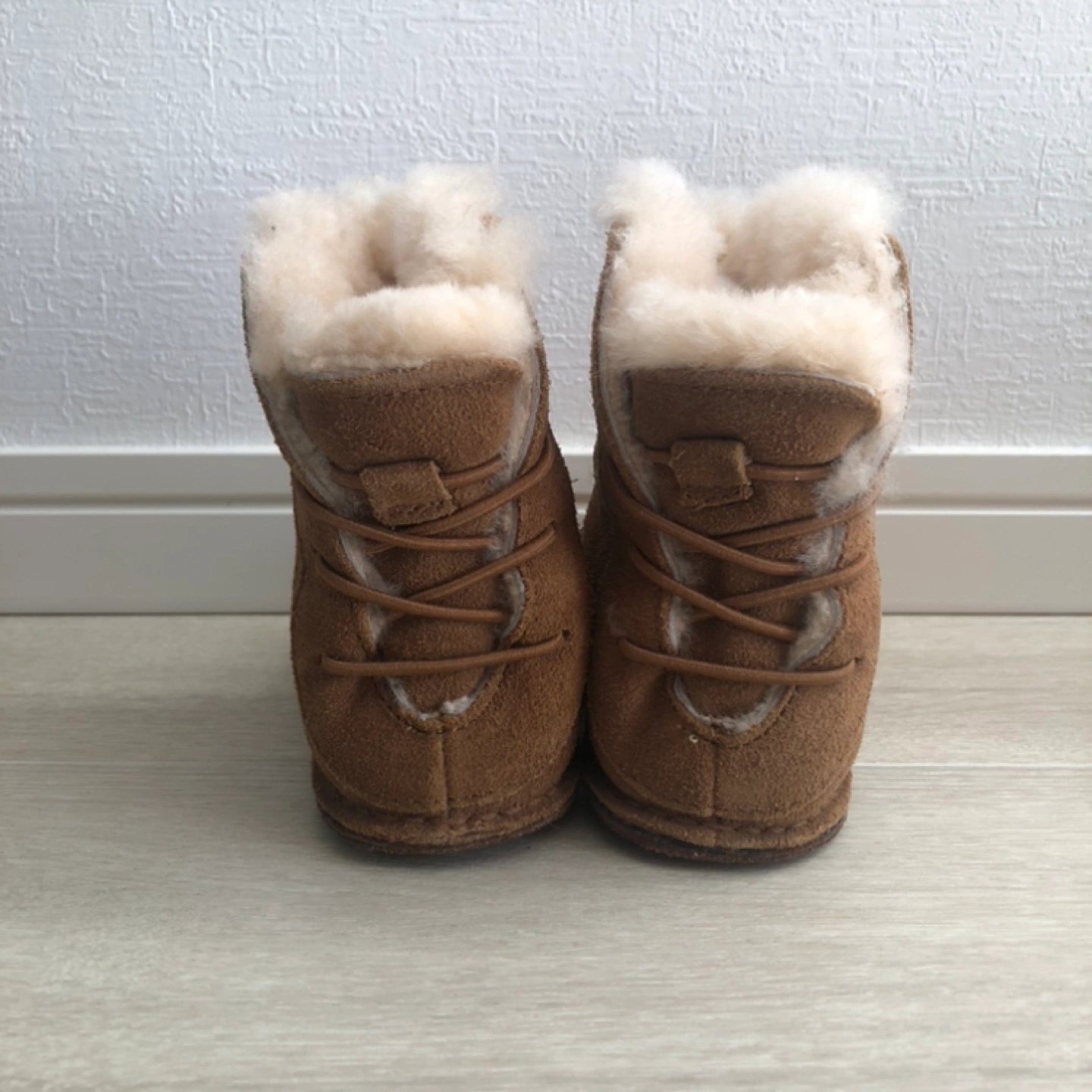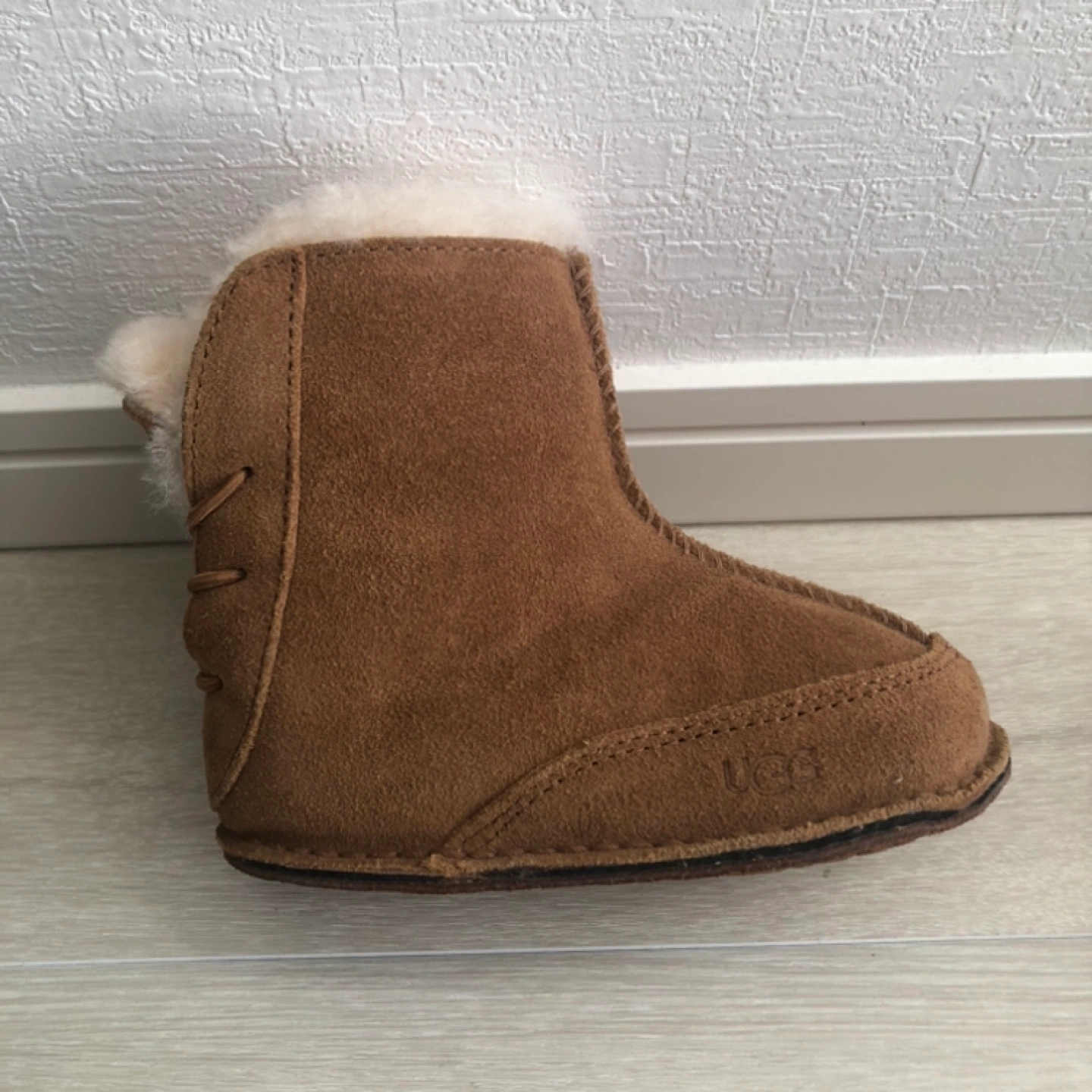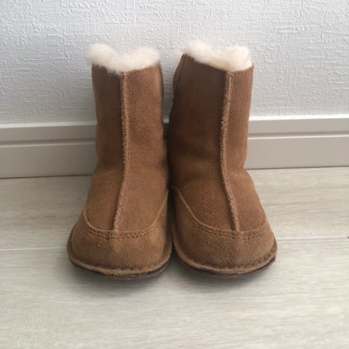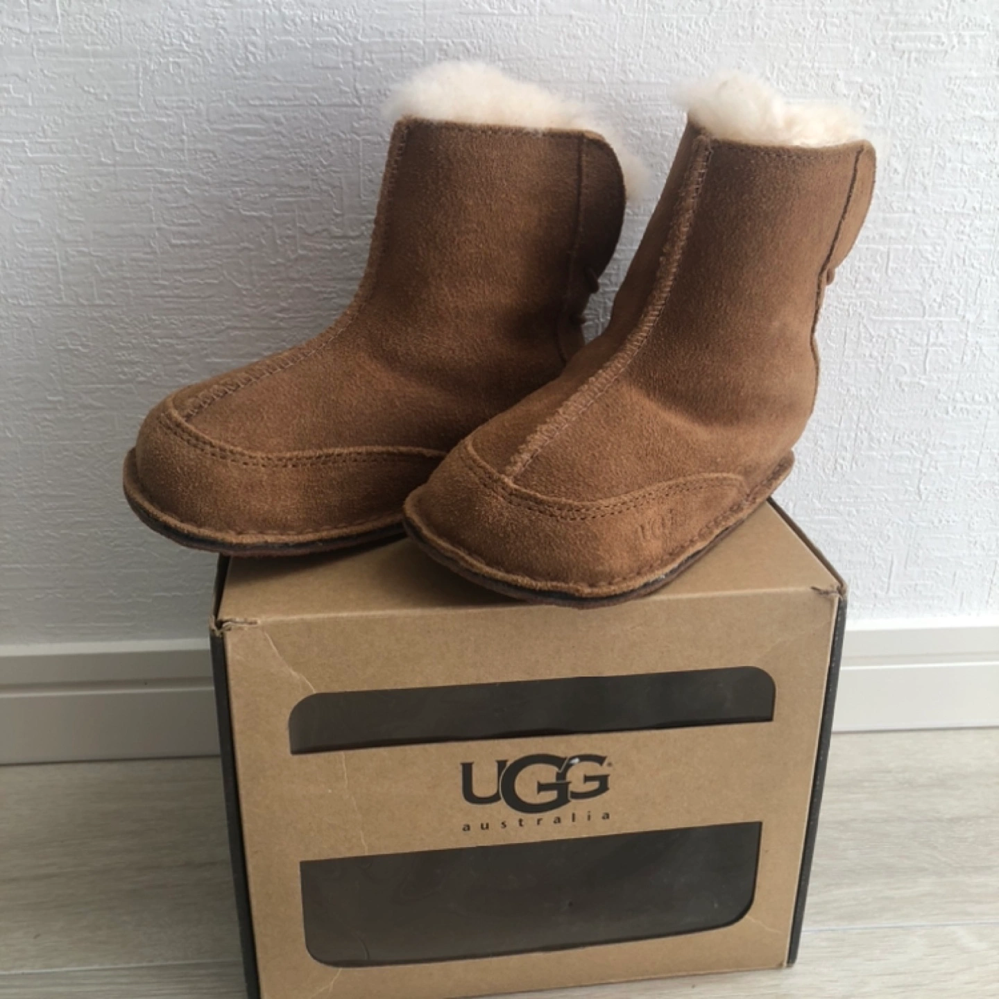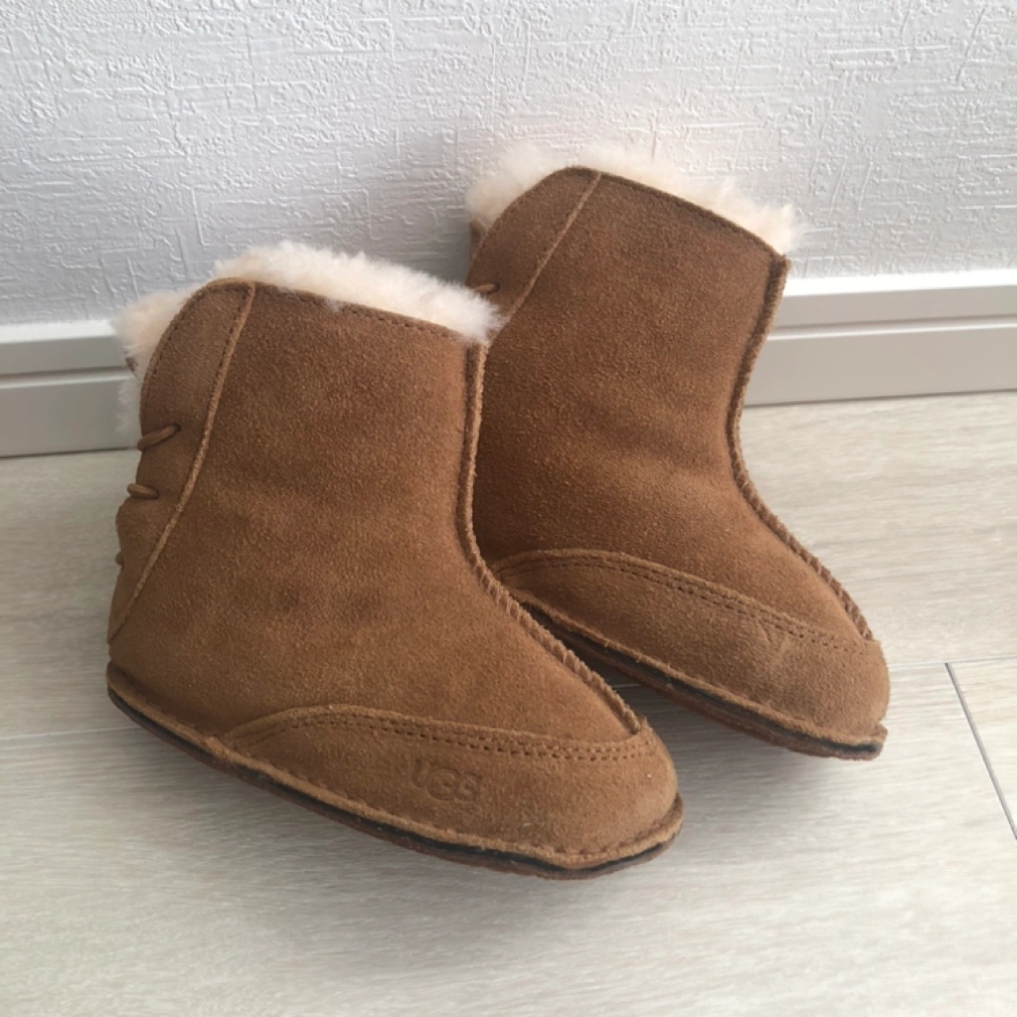 UGG Australiaのムートンブーツです。 可愛らしいデザインで、お子様にも大人気です。 2回位短時間の使用ですので、とても状態は良いです。 【ブランド】UGG Australia 【カテゴリ】ベビーブーツ、ブーティ 【商品の状態】目立った傷や汚れなし 【サイズ】Lサイズ 【素材】ムートン サイズLとあります。おそらく15〜16センチくらいと思われます。 よろしくお願いいたします。