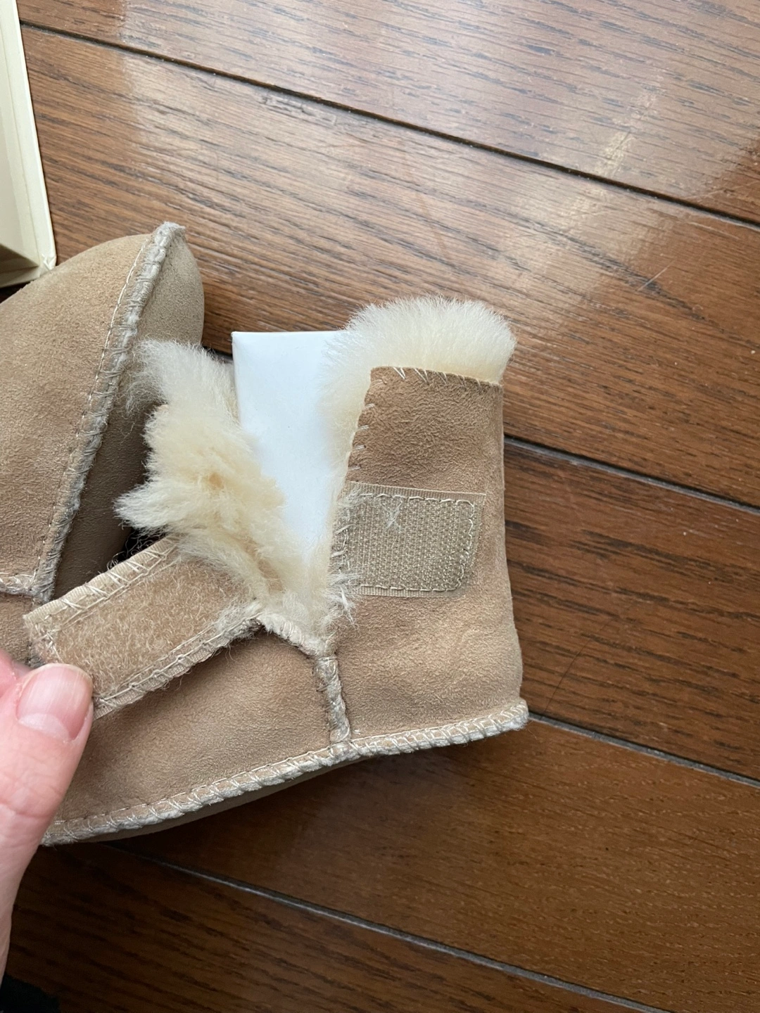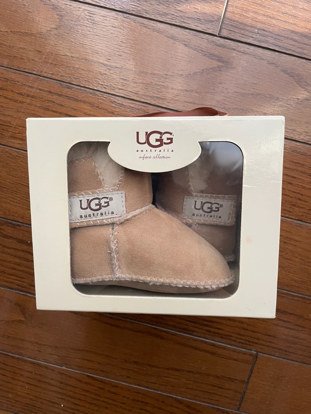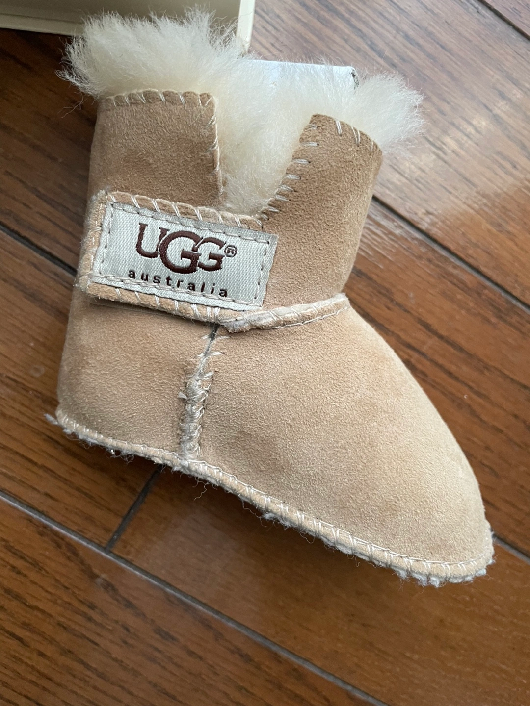 UGG アグ ERIN Infant ベビー ムートン ブーツ サイズ: S 11cm ( 6-12 か月用 ) カラー: Chestnut チェスナット リアルスウェード素材 新品・未使用品・タグ付き 検品と出品用写真を撮るため、一度開封しました。 UGG 正規品 (証明コード有) 国内価格 9,900円 内側には赤ちゃんの小さい足を暖かく守る、UGG独自のピュアウールを使用した安心できるムートンブーツです。 とてもかわいらしく、店頭でもオンラインでも人気です。