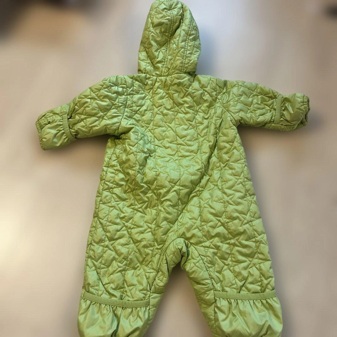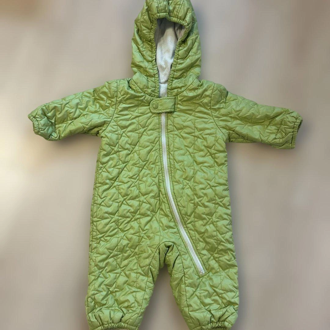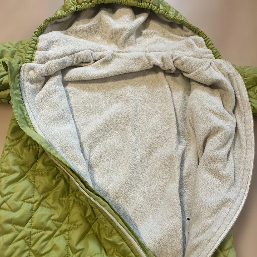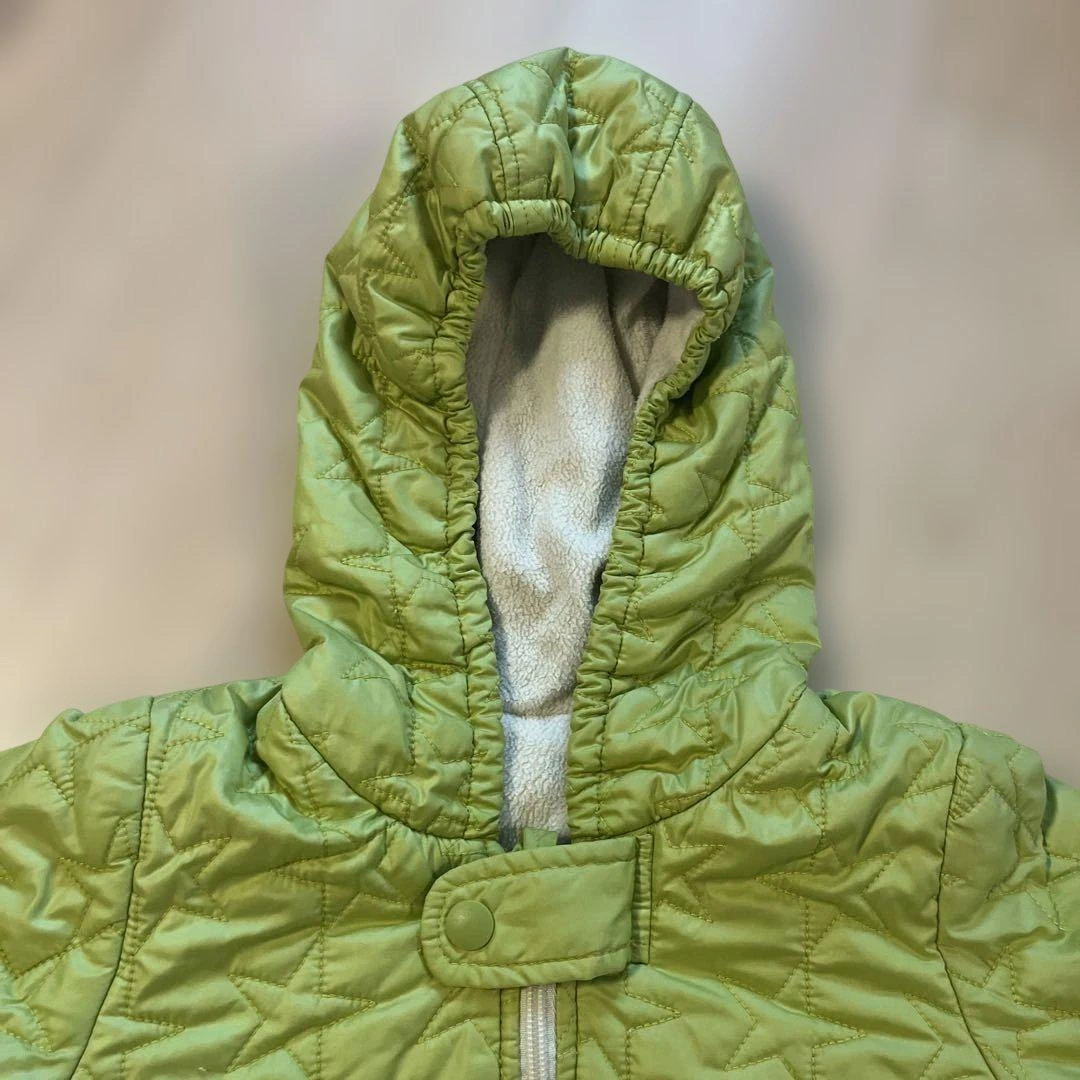 お下がりで頂き1シーズン使用しましたが、生地の擦れや汚れなど目立つものはなく綺麗な状態かと思います。フードを被せて着せるととても可愛かったです!中古品のご理解あるかたにお譲りいたします。